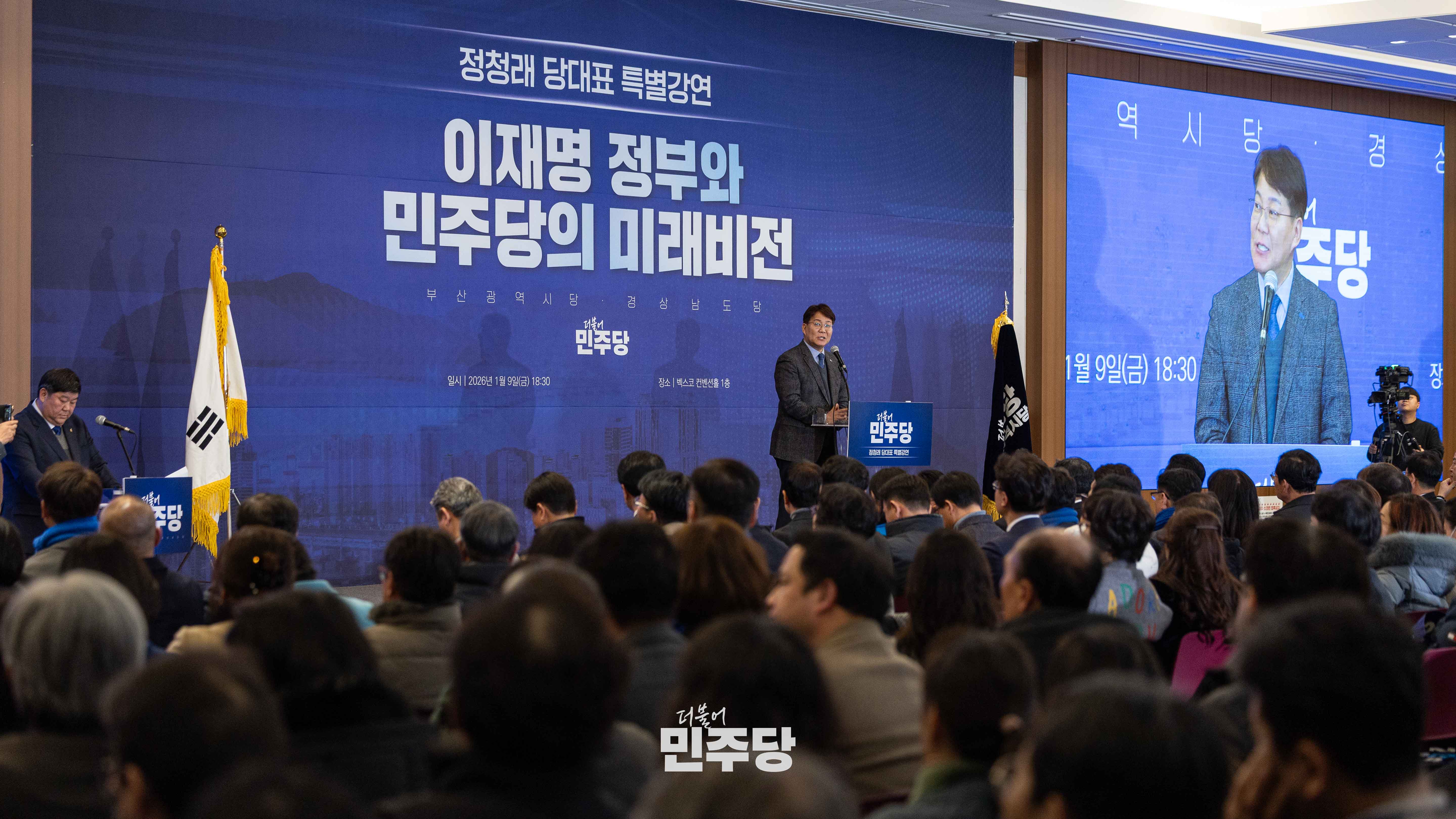 정청래 당대표가 2026.01.09.(금) 부산에 위치한 벡스코에서 부산 경남 당원들을 대상으로 당원교육을 하고 있다.