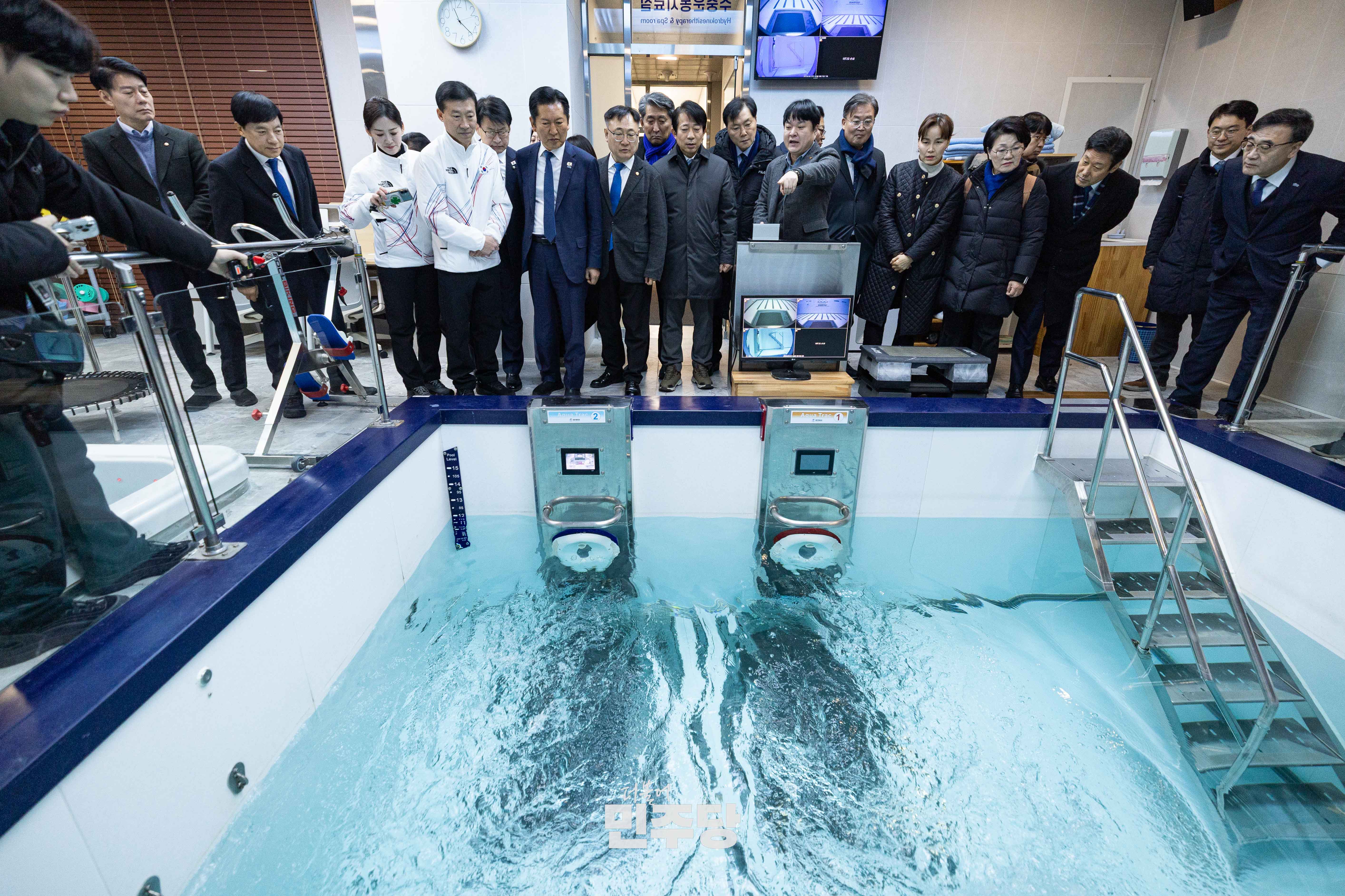 정청래 당대표가 2026.01.24.(금) 충북 진천군에 위치한 진천선수촌에 방문하여 메디컬센터를 둘러보고 있다.