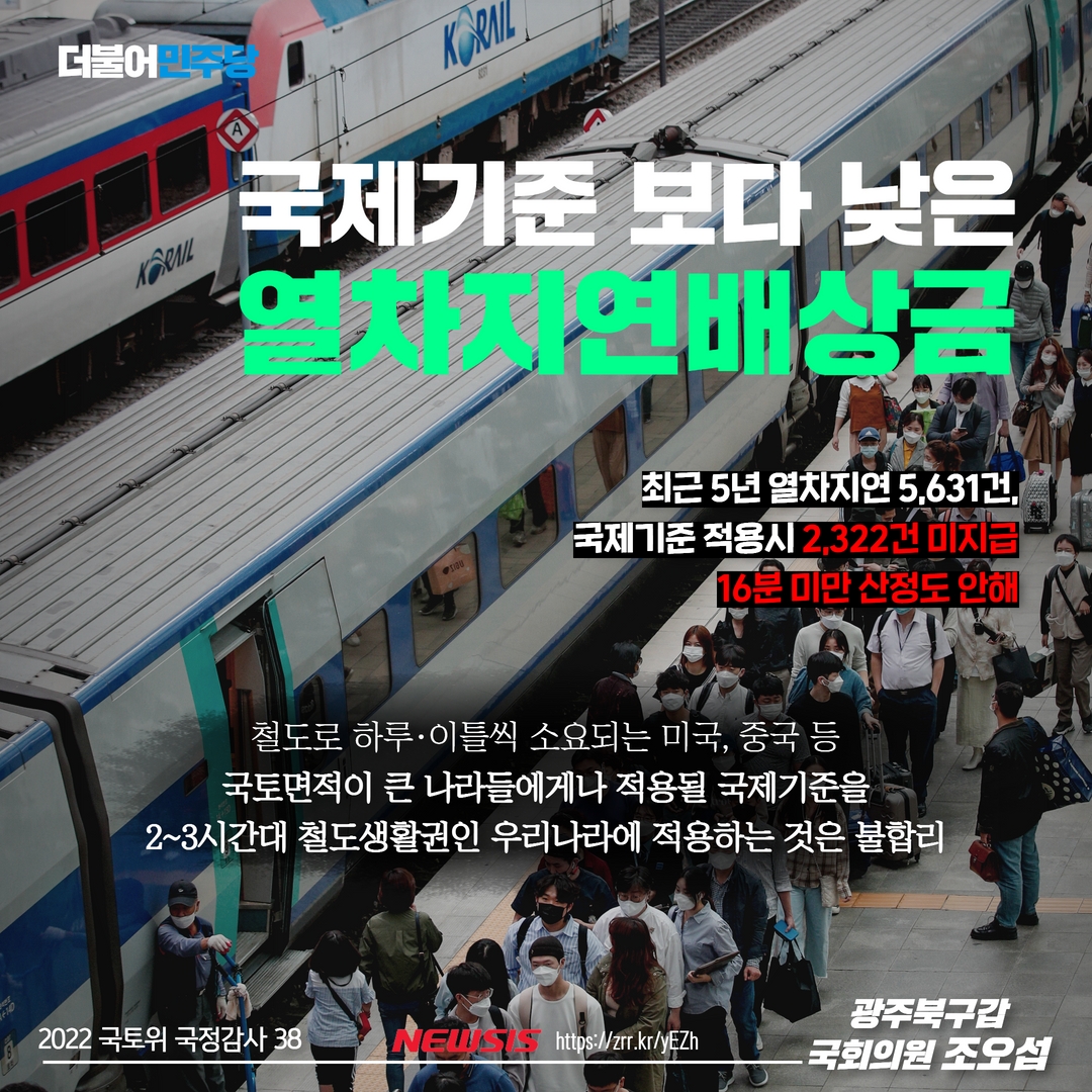 [국회의원 조오섭]"국제기준 보다 낮은 열차지연배상금"