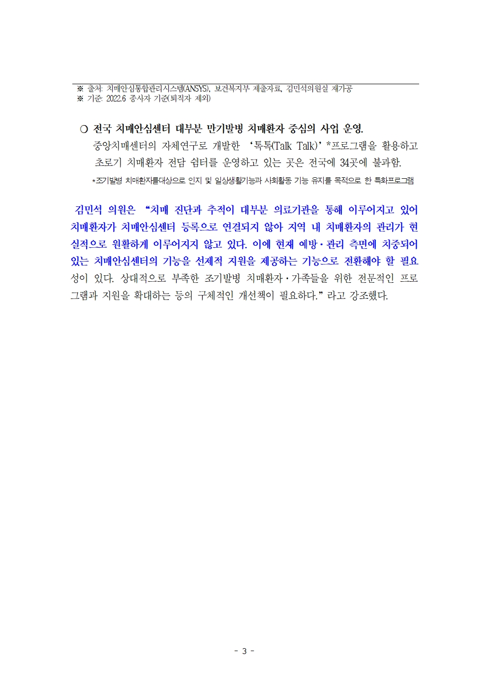 김민석의원실보도자료_치매안심센터인력난_해결해야.hwp
