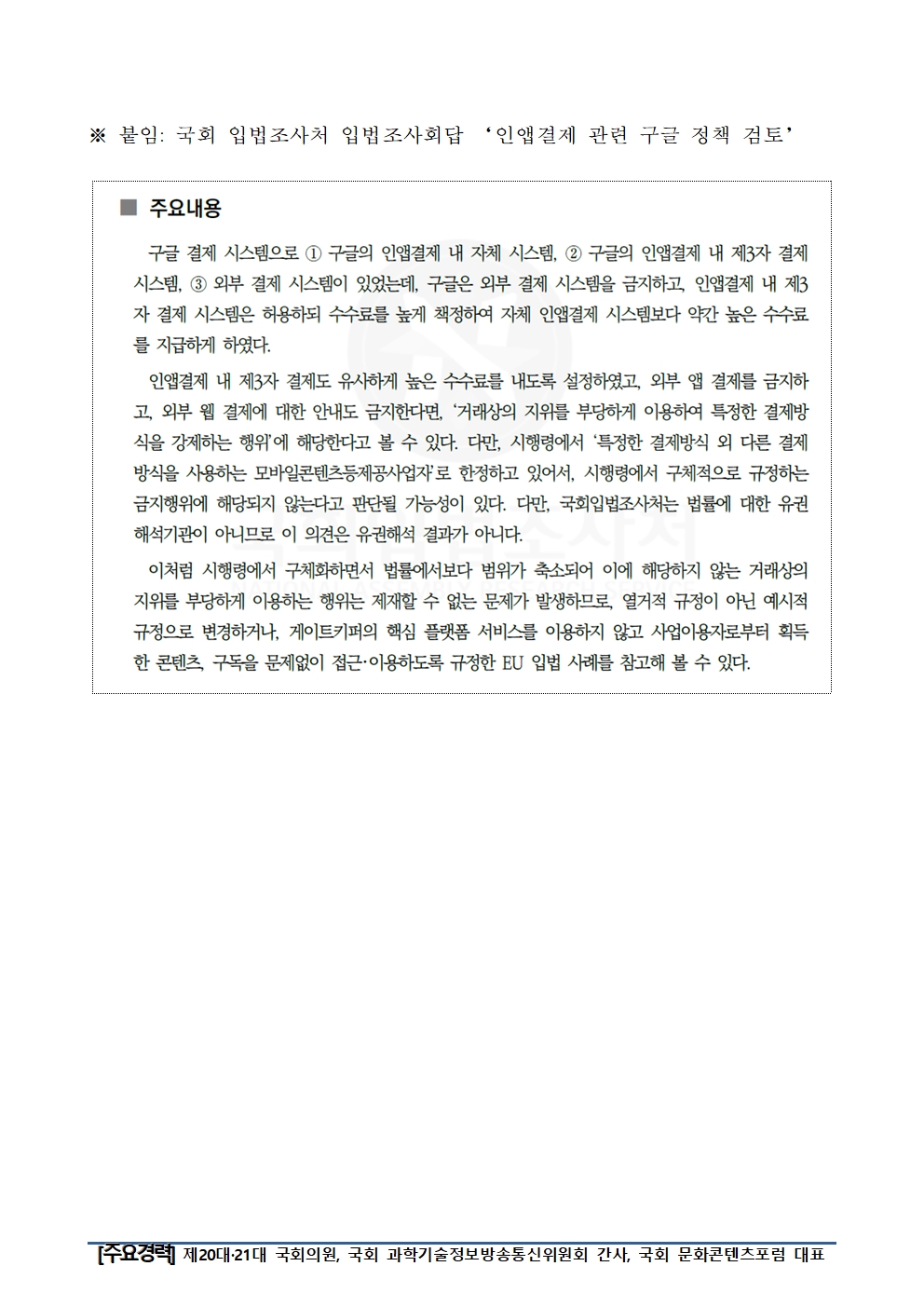 221021_국감보도자료국회_입조처도_구글_인앱결제_강제_정책은_법상_금지행위_위반_인정.hwp