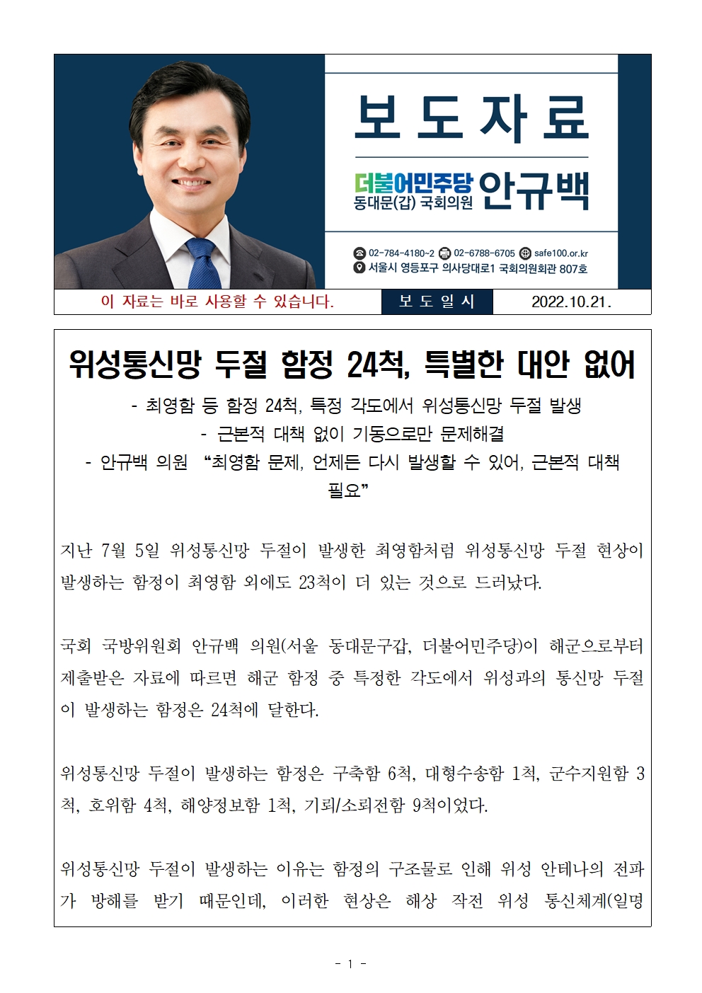 문의 : 안규백 의원실 02-784-4180, 4181