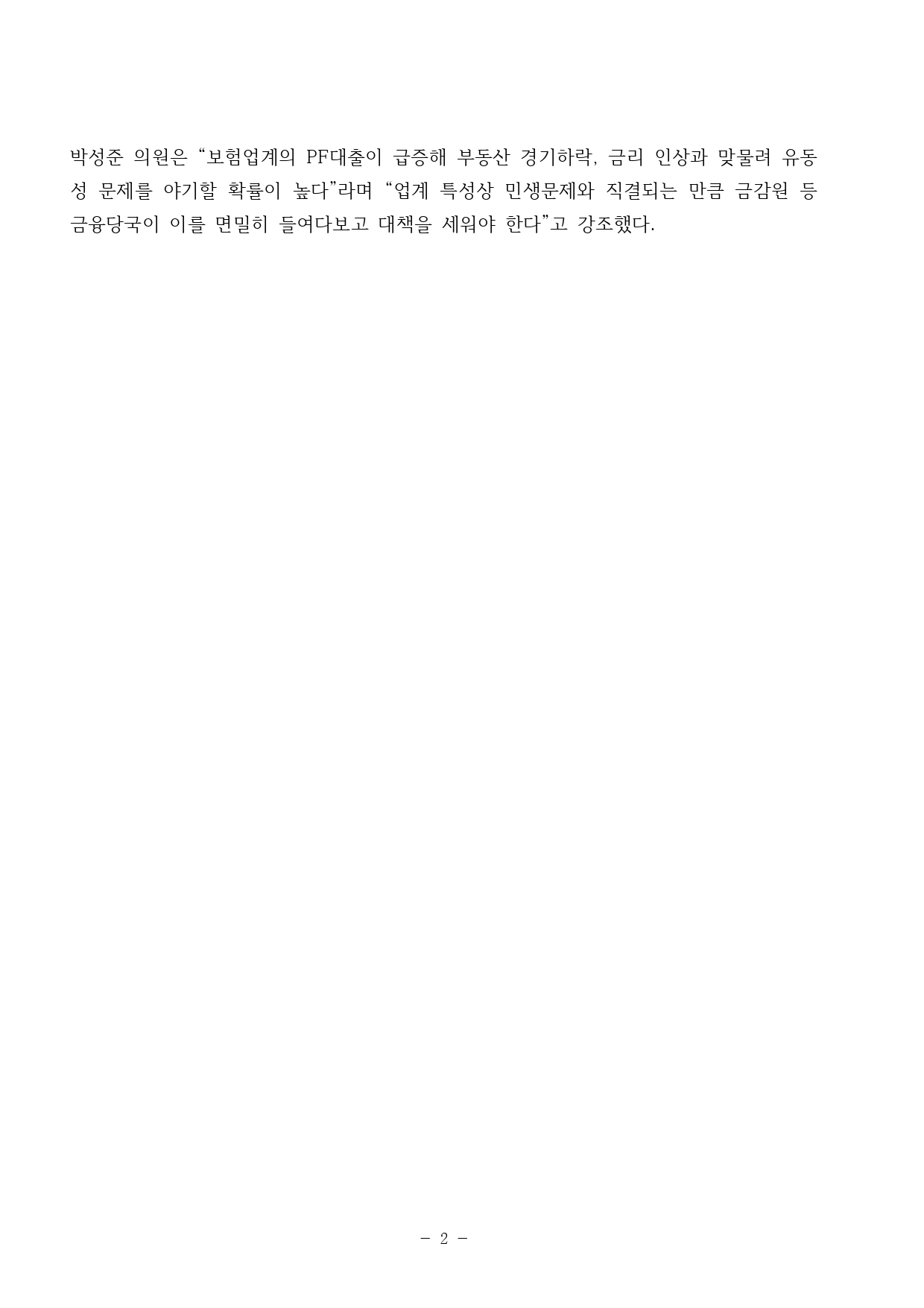 [국회의원 박성준] 최근 10년새 부실 가능성 높은 PF대출 10배 증가