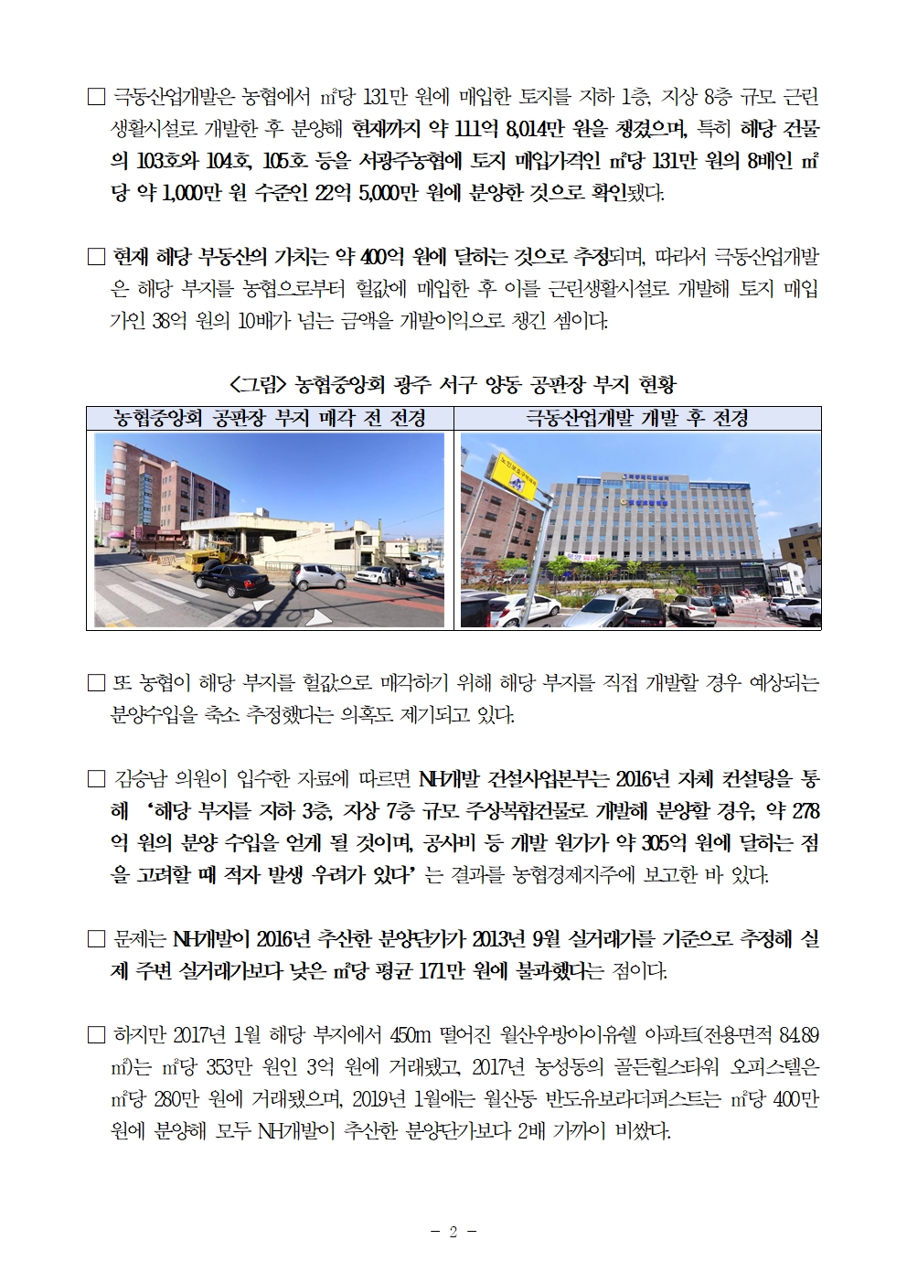 [김승남 보도자료] 농협 수의계약으로 공판장 부지 건설사에 헐값 매각