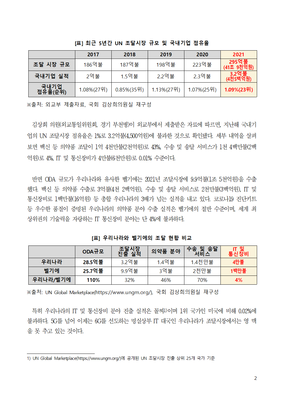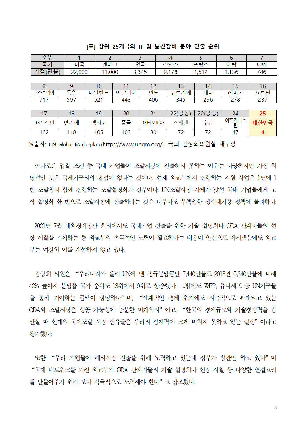 [국회의원 김상희 보도자료] 대한민국 기업 UN 조달시장의 1퍼센트에 불과, 외교부 적극 지원 필요