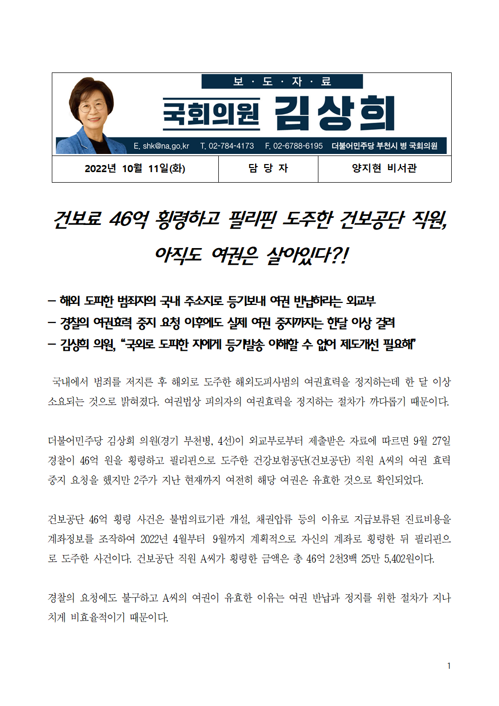 20221011_국회의원_김상희_보도자료_건보_46억_횡령직원_여권,_아직도_살아있다.hwp