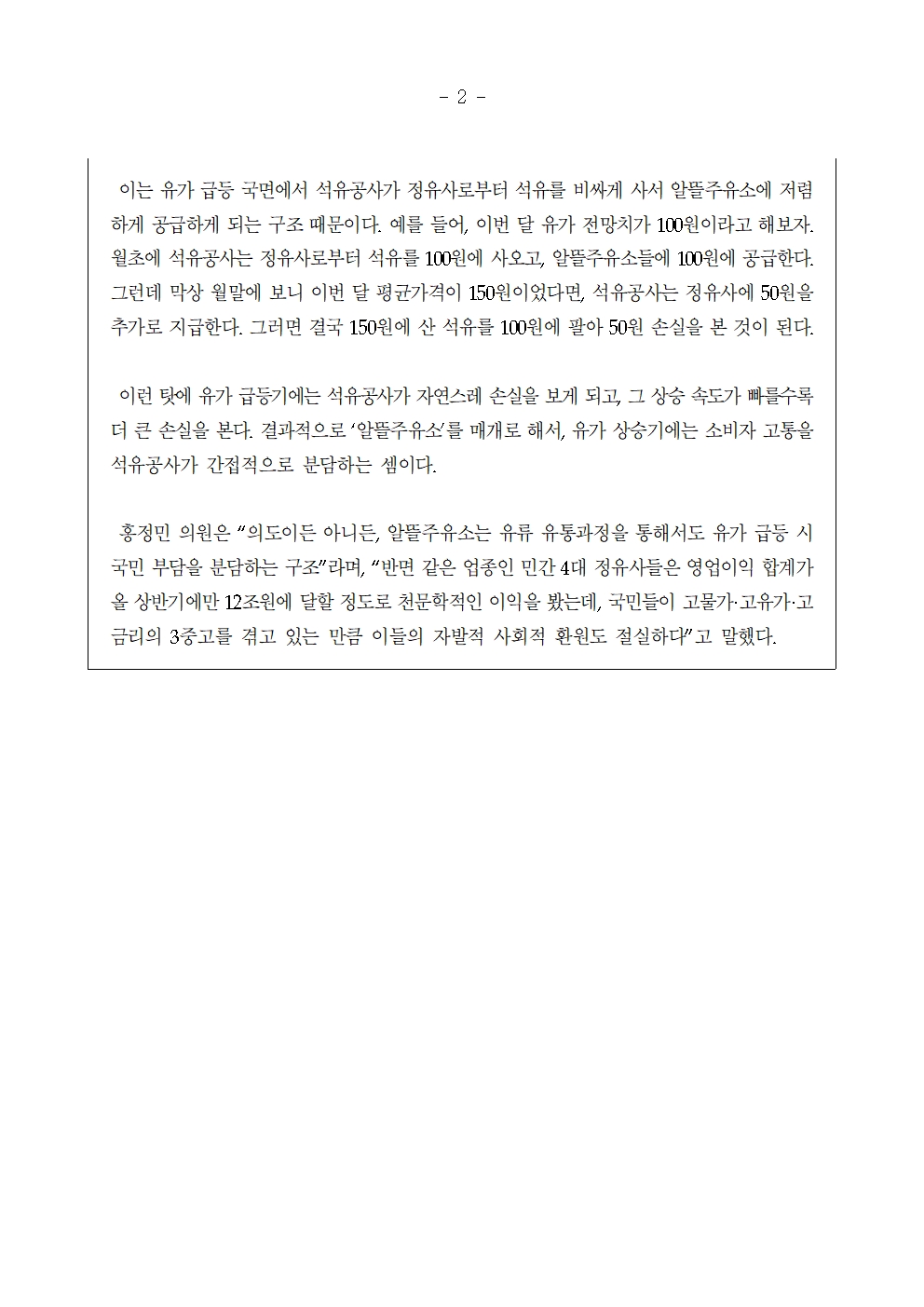 홍정민_보도자료_이례적_유가_급등,_석유공사_알뜰주유소_사업은_적자_221021.hwp