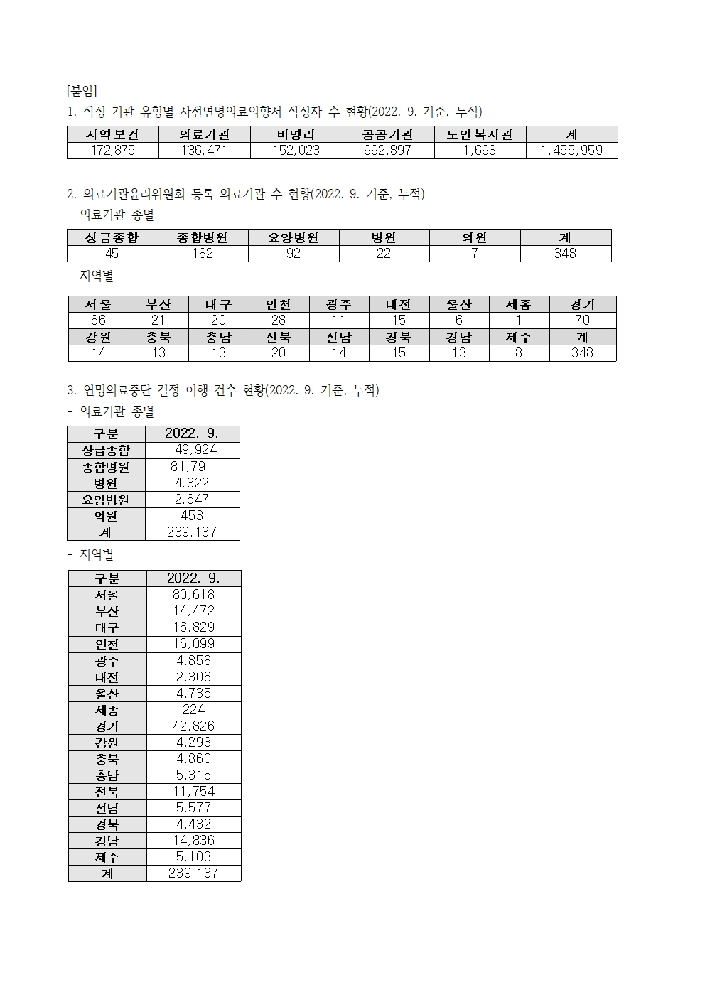 221018_(보도자료)_연명의료결정제도_시행_후_연명의료중단_결정_이행_약_24만건_이뤄져.hwp