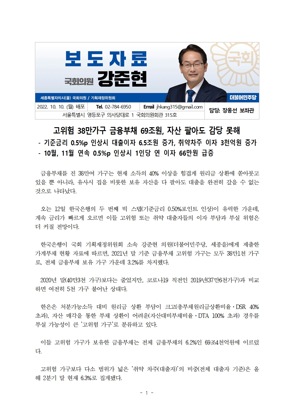 221010_강준현의원_보도자료_고위험_38만가구_금융부채_69조원에_달해.hwp