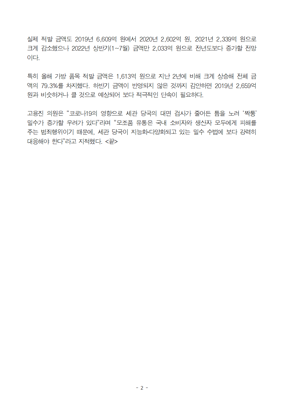 220920_고용진_보도자료_짝퉁_명품_밀수_최근_5년간_1조_8,800억_규모.hwp