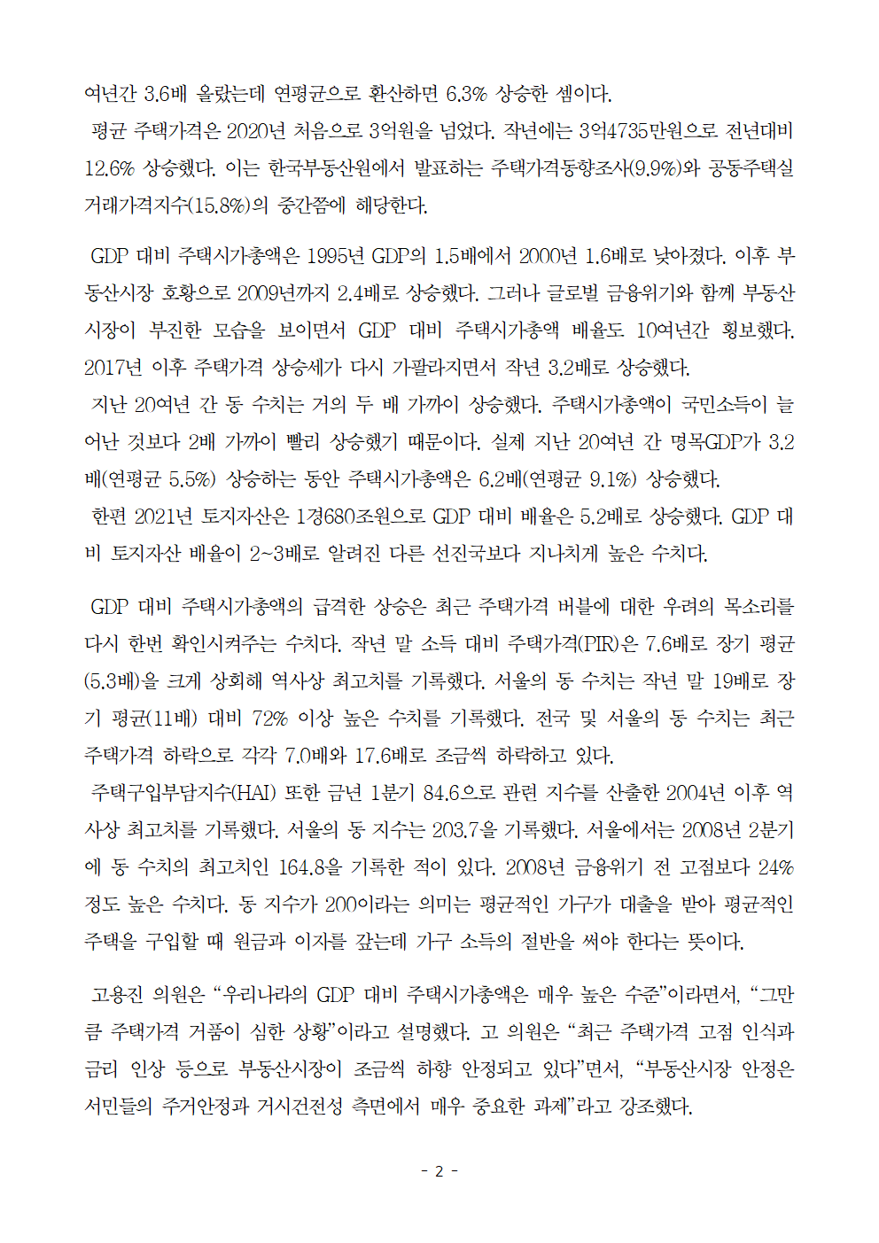 220922_고용진_보도자료_GDP_대비_주택_시가총액_3_2배.hwp
