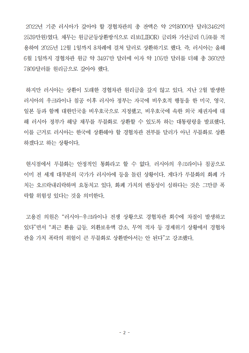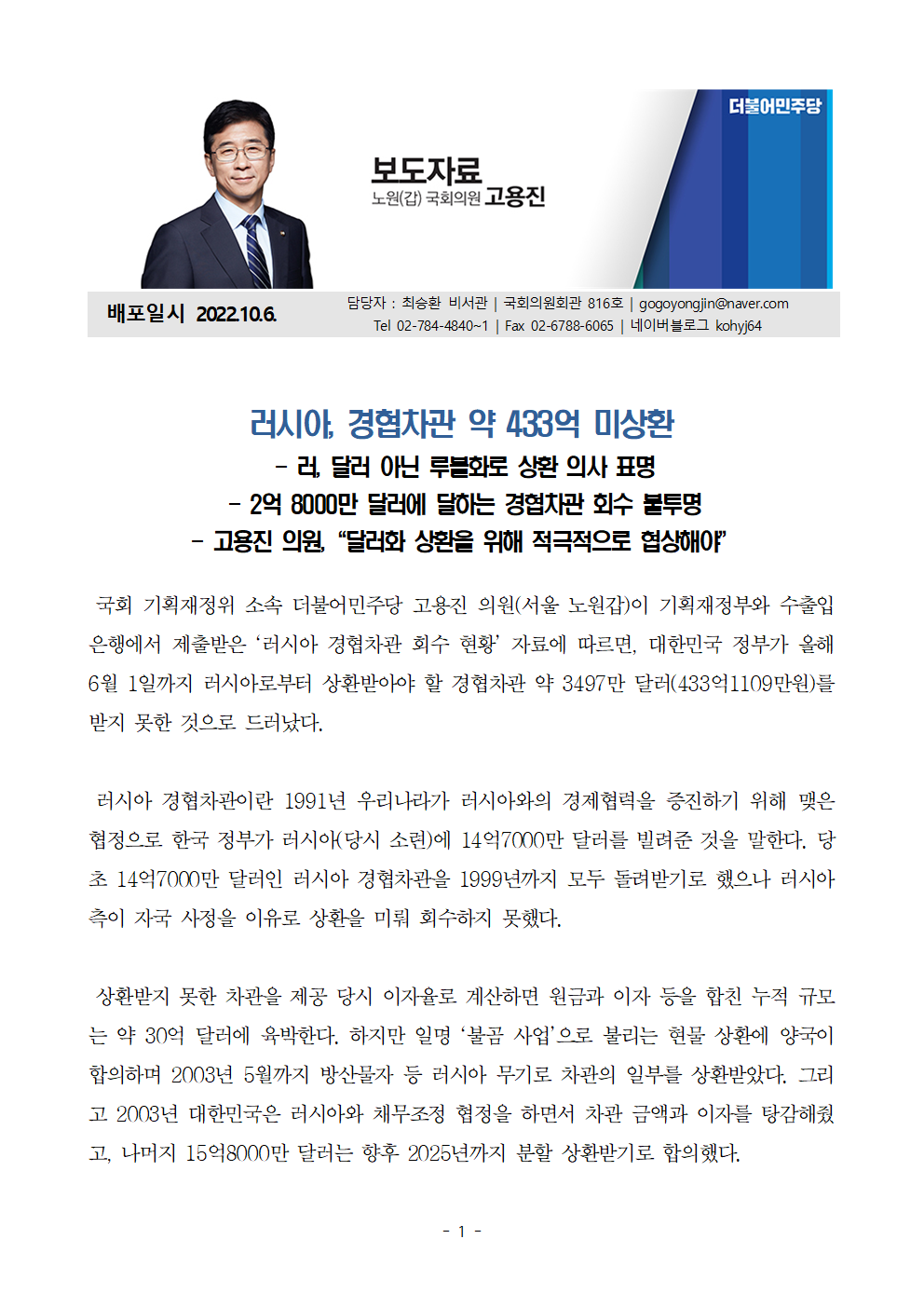 221006_고용진_보도자료_러시아,_경협차관_약_433억_미상환.hwp