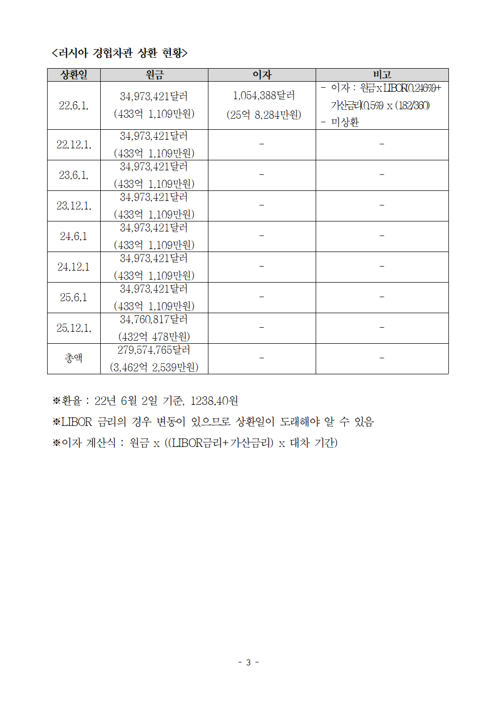 [고용진 의원실] 러시아, 경협차관 약 433억 미상환