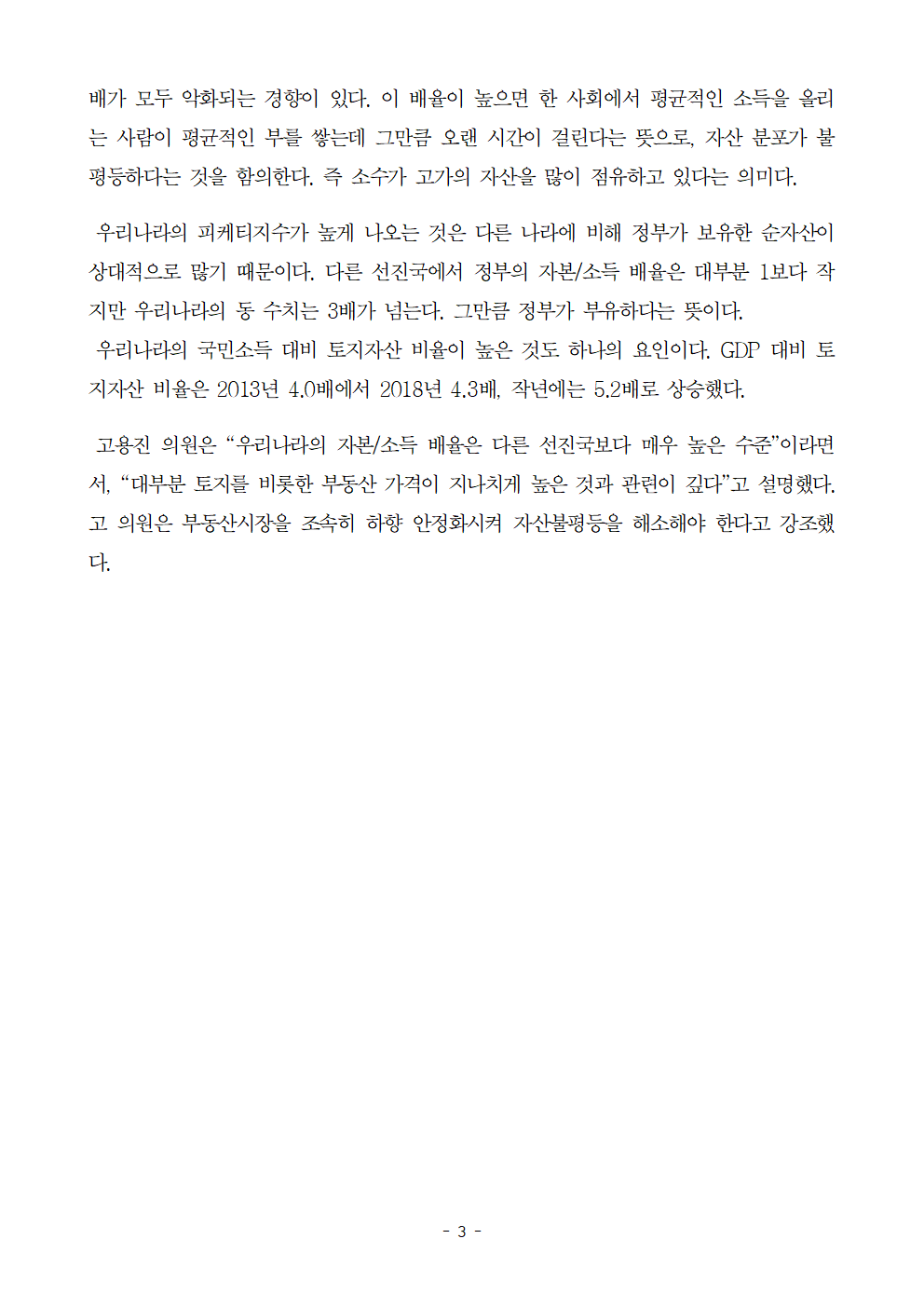 [고용진 보도자료] 지난해 우리나라 피케티지수 9.6배로 상승