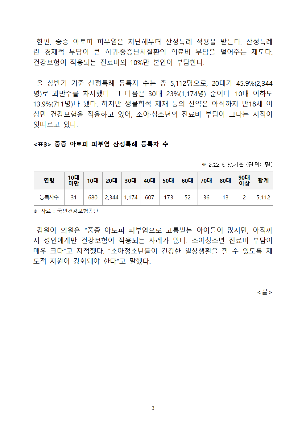 김원이의원_보도자료_9번_중증_아토피_입원환자_절반은_10대이하_소아청소년_220921.hwp