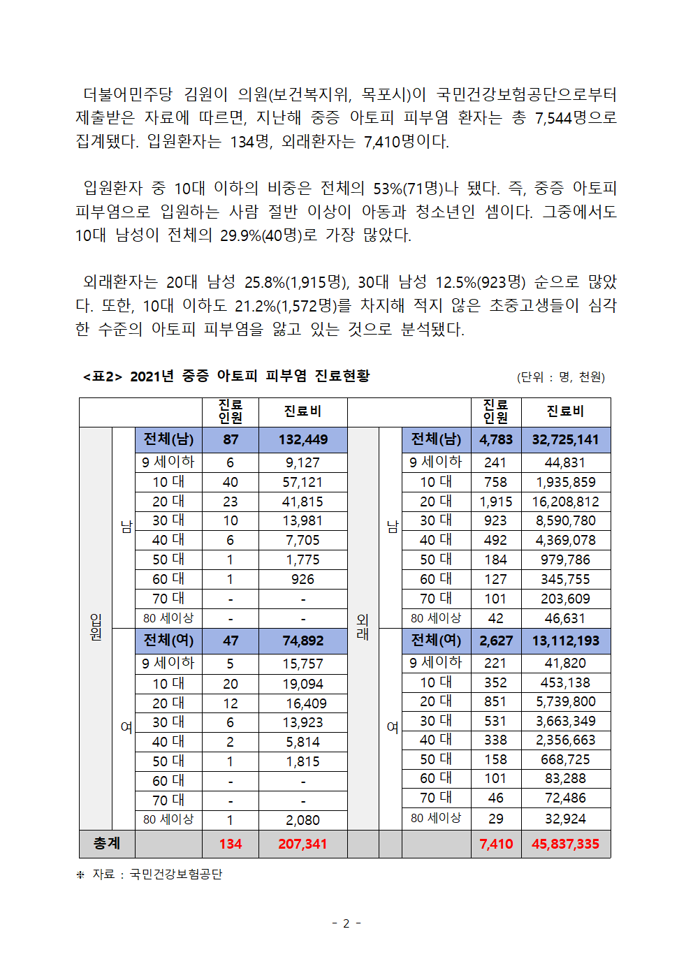 [김원이 보도자료] 중증 아토피 입원환자 절반은 10대이하 소아청소년