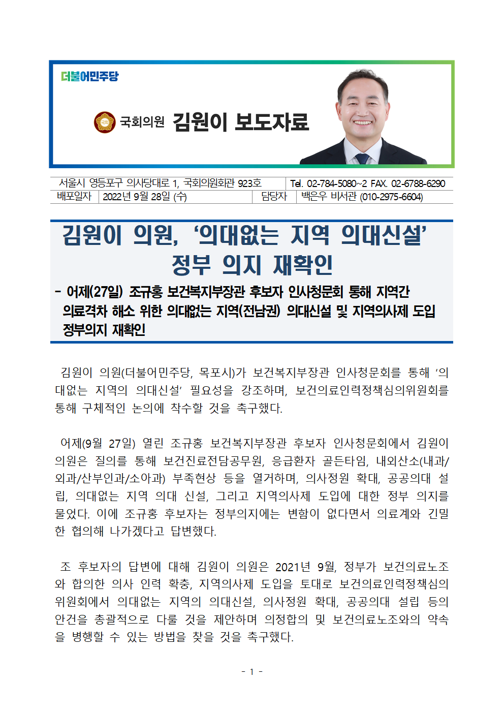 보도자료_김원이_의원,_‘의대없는_지역_의대신설’_정부_의지_재확인_220928.hwp