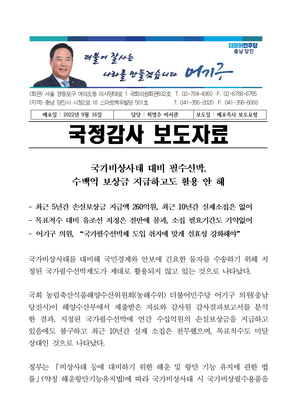 220916어기구의원_국정감사_보도자료_국가비상사태_대비_필수선박,_수백억_보상금_지급하고도_활용_안_해.hwp