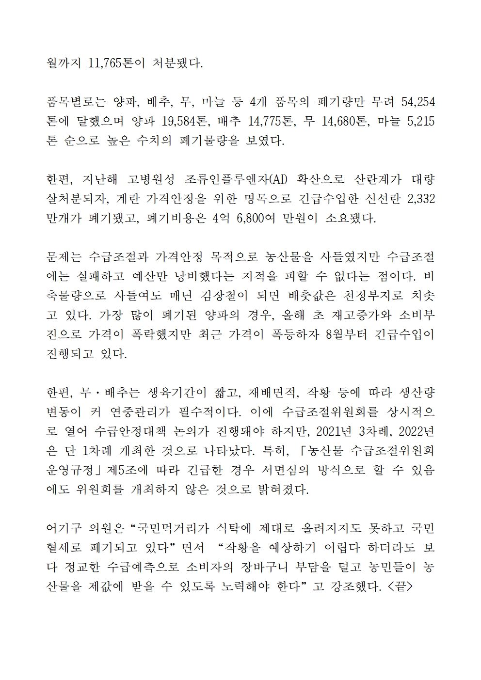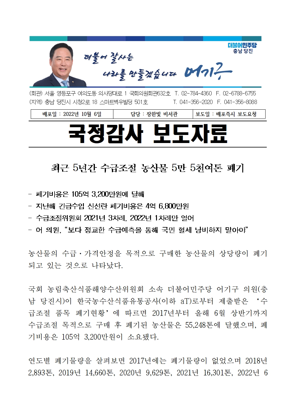 221006어기구의원_국정감사_보도자료_최근_5년간_수급조절_농산물_5만_5천여톤_폐기.hwp
