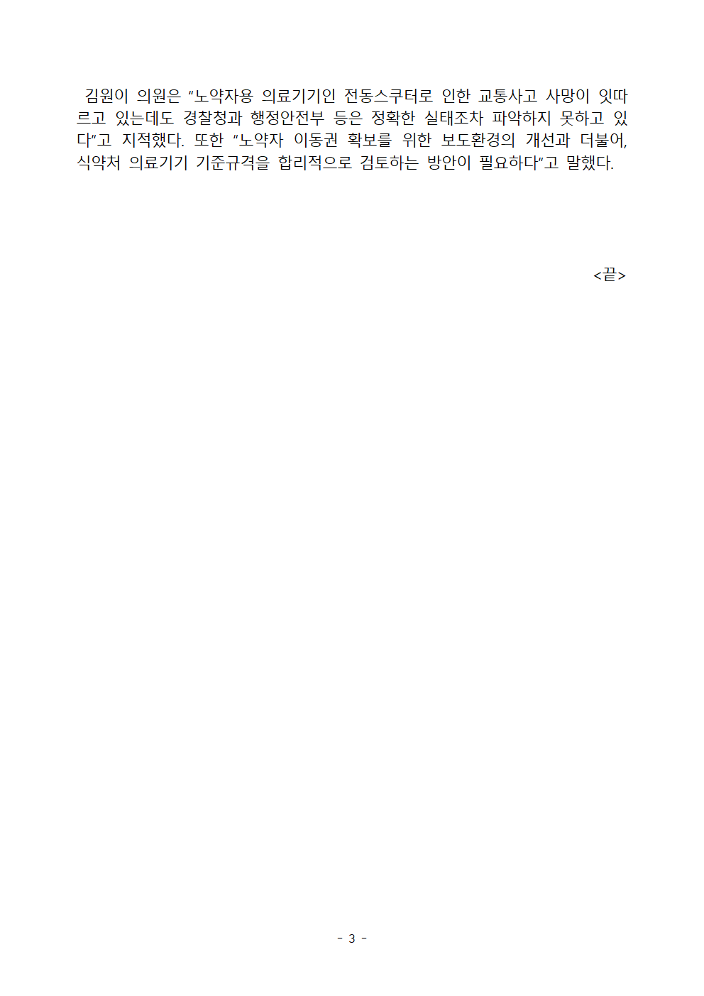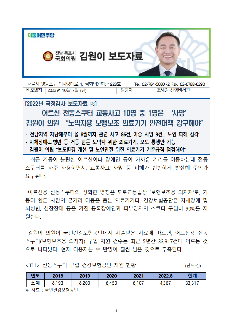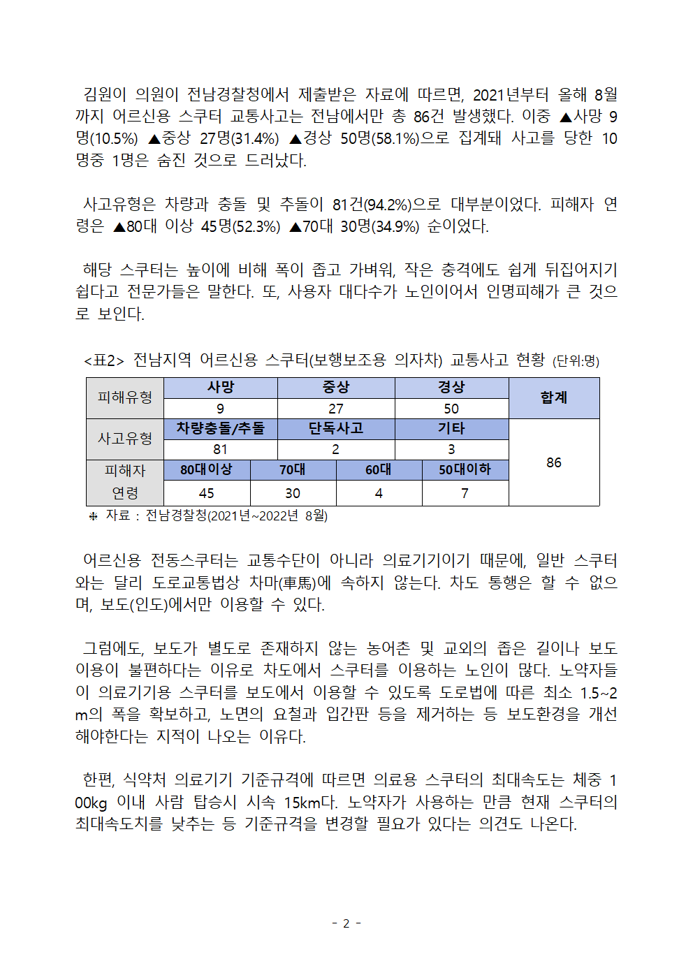 [김원이의원 보도자료] 어르신 전동스쿠터 교통사고 10명 중 1명은 사망