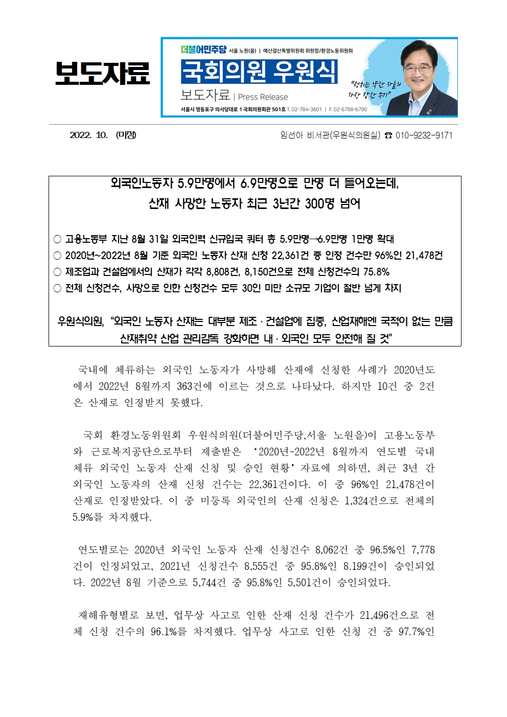 221006_외국인노동자_5_9만명에서_6_9만명으로_만명_더_들어오는데,산재_사망한_노동자_최근_3년간_300명_넘어.hwp