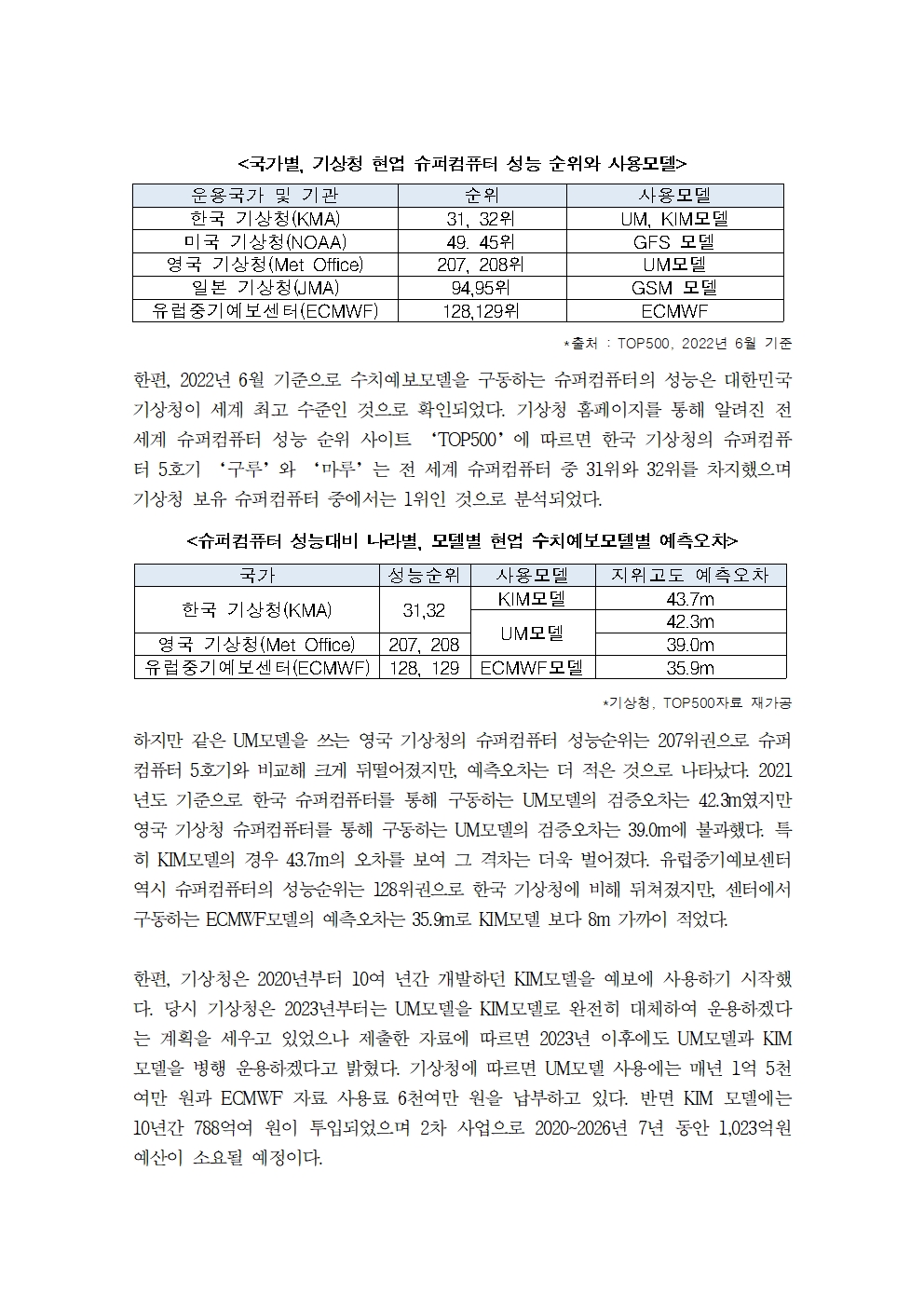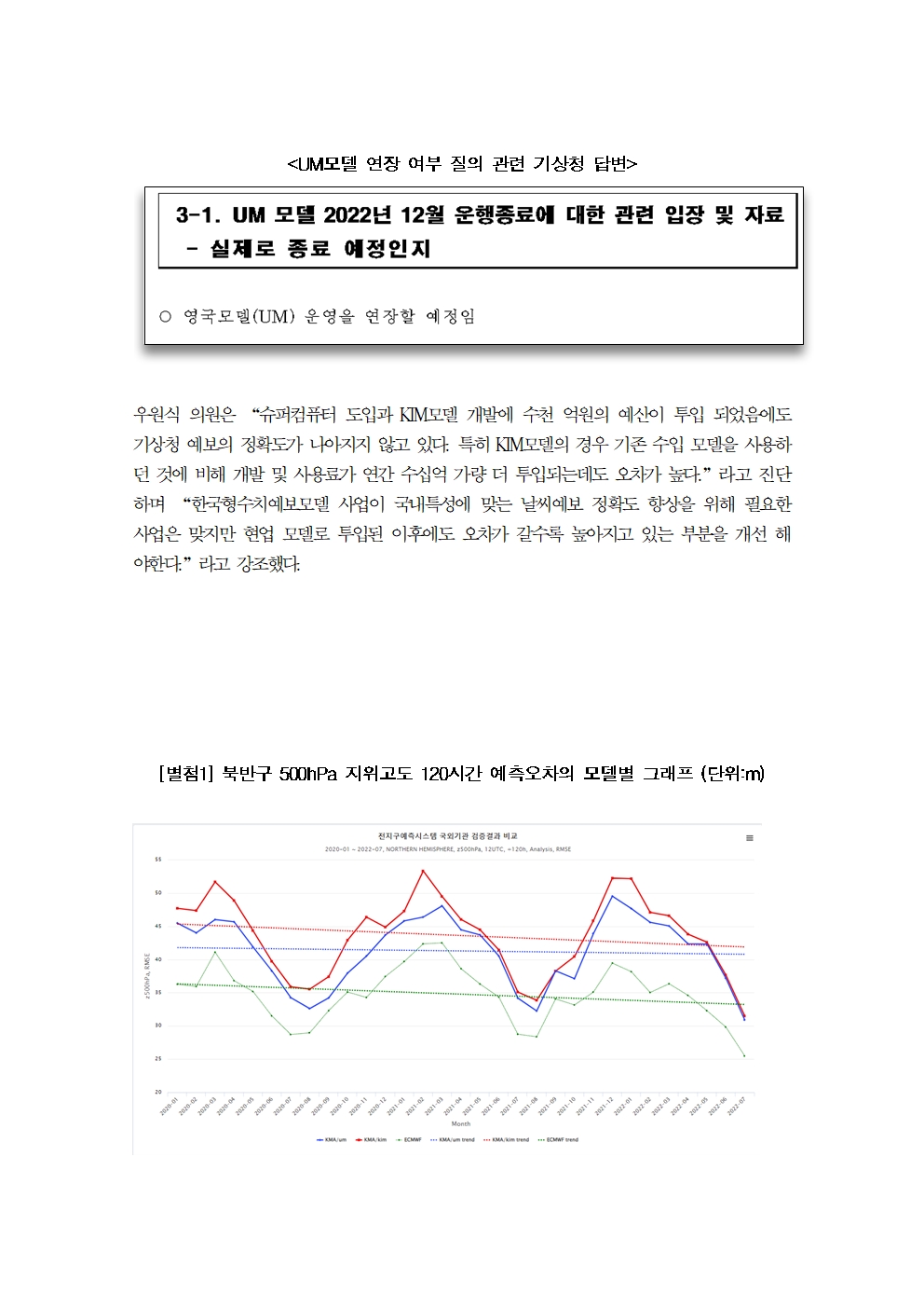 [우원식 의원 보도자료] 1,811억 한국형수치예보모델, 도입 이후 3년 연속 비 적중률은 하락 예측 오차는 증가 … 수입산 기존 모델이 예보 정확도 더 높아