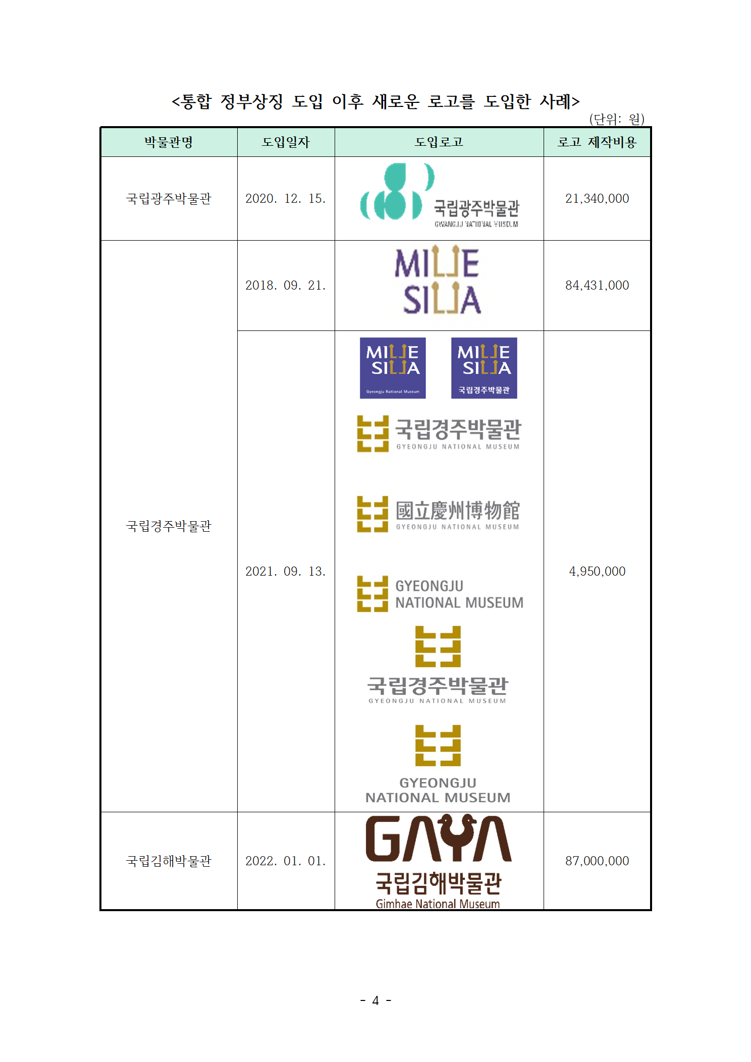 [국회의원 이상헌 보도자료] 통합 정부상징 외면하는 국립박물관, 수천만 원 들여 새 로고 제작