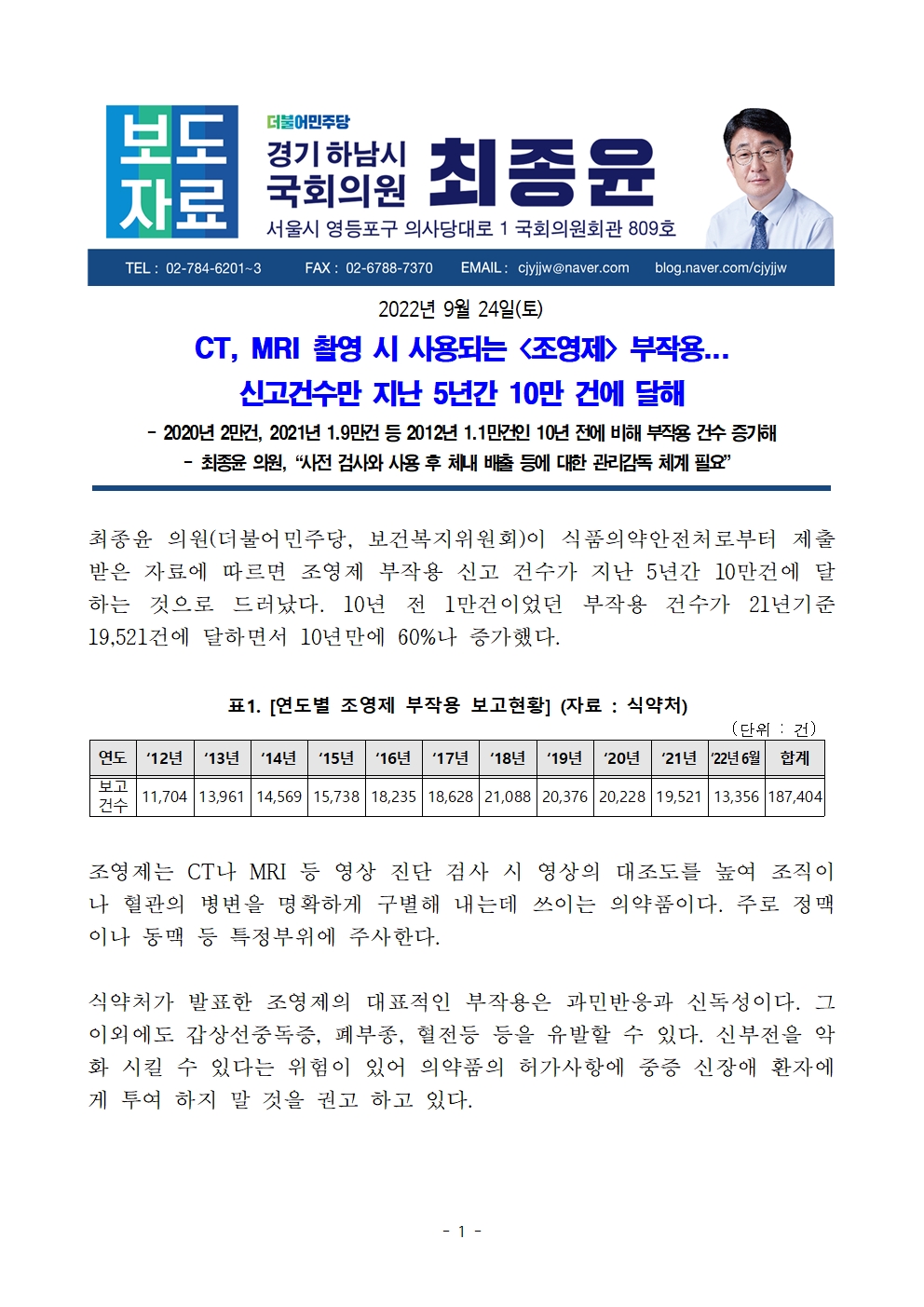 220923_최종윤의원실_CT,_MRI_촬영시_사용되는_조영제_부작용_신고건수_5년간_10만건에_달해_(1).hwp