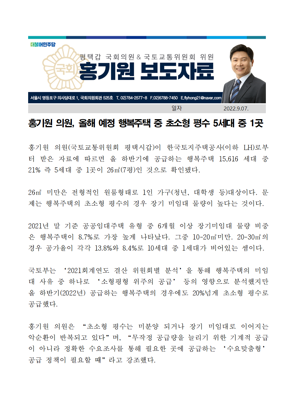 220907보도자료홍기원_의원,_올해_예정_행복주택_중_초소형_평수_5세대_중_1곳.hwp