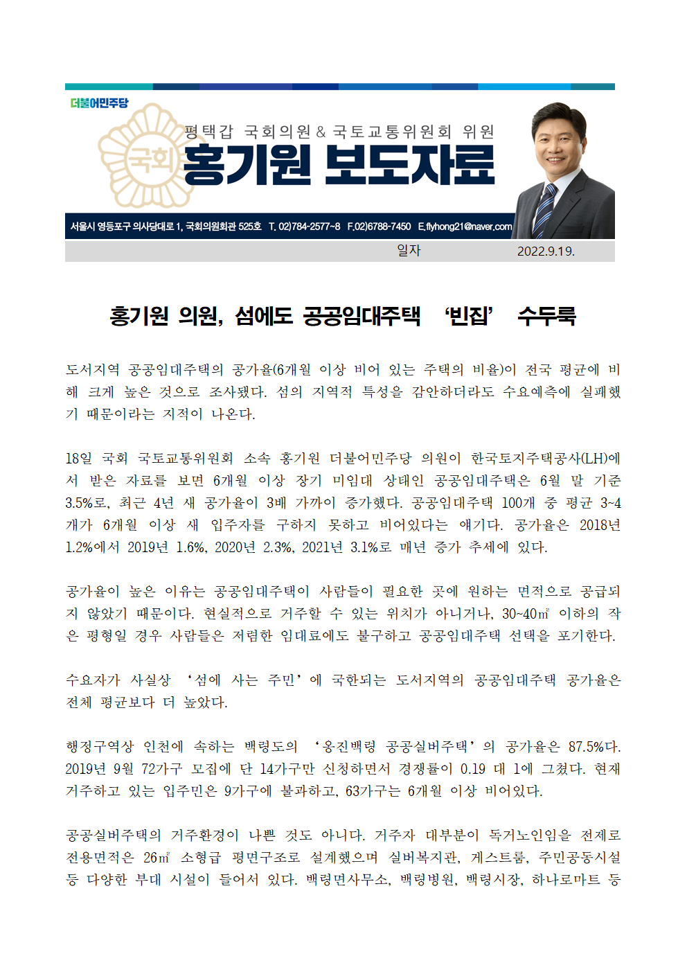 220919보도자료홍기원_의원_섬에도_공공임대주택_빈집_수두룩.hwp
