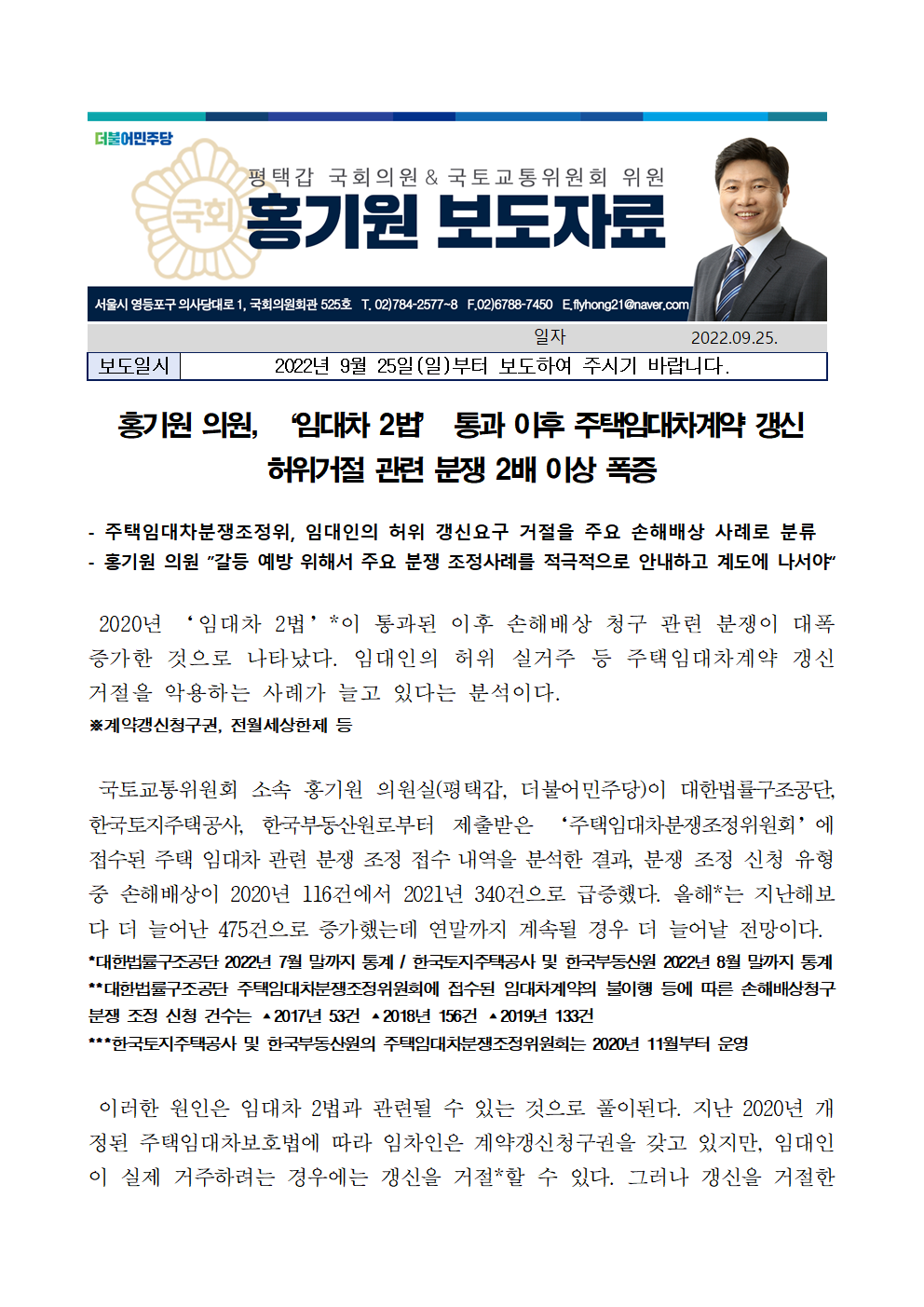 220925-보도자료홍기원_의원,‘임대차_2법’_통과_이후_주택임대차계약_갱신_허위거절_관련_분쟁_2배_이상_폭증.hwp