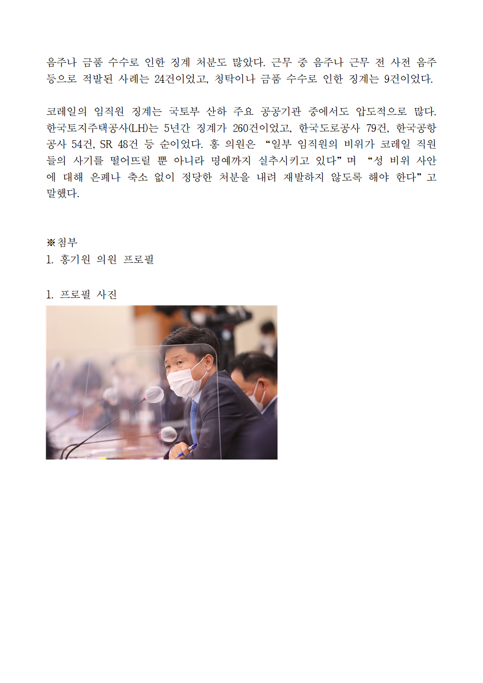 [홍기원의원 국정감사 보도자료] 홍기원 의원, 코레일 국토부 산하기관 중 징계처분 최다…성비위 5년간 58건