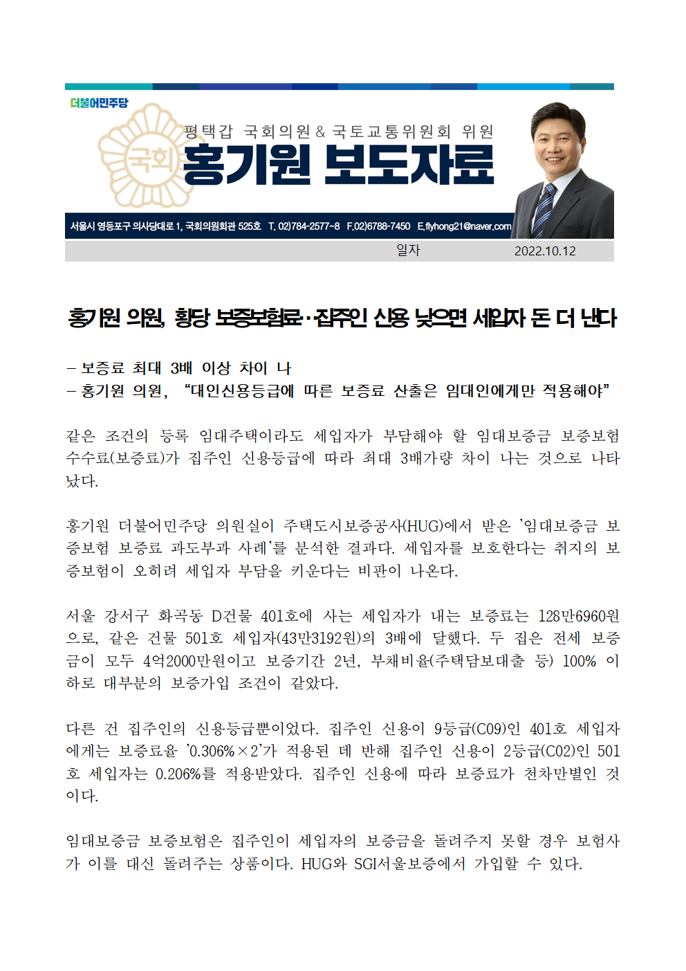 221012보도자료홍기원의원,_황당_보증보험료_집주인_신용_낮으면_세입자_돈_더_낸다.hwp