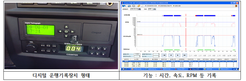 * 교통안전법 시행규칙 제29조의2에 운행기록장치의 기준 및 기능 규정