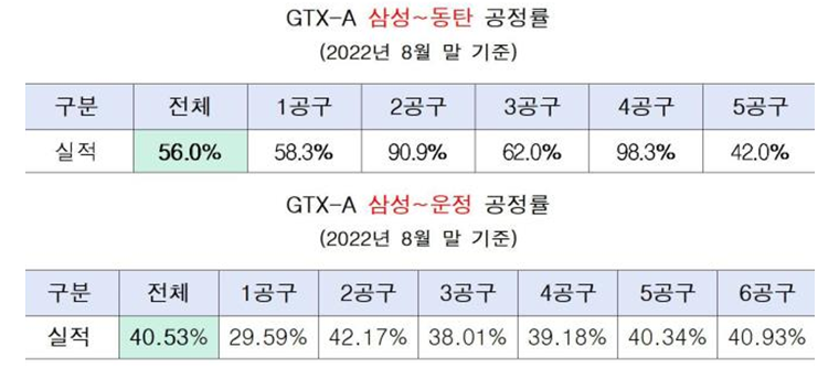 □ GTX-A노선 공정률(2022.08)