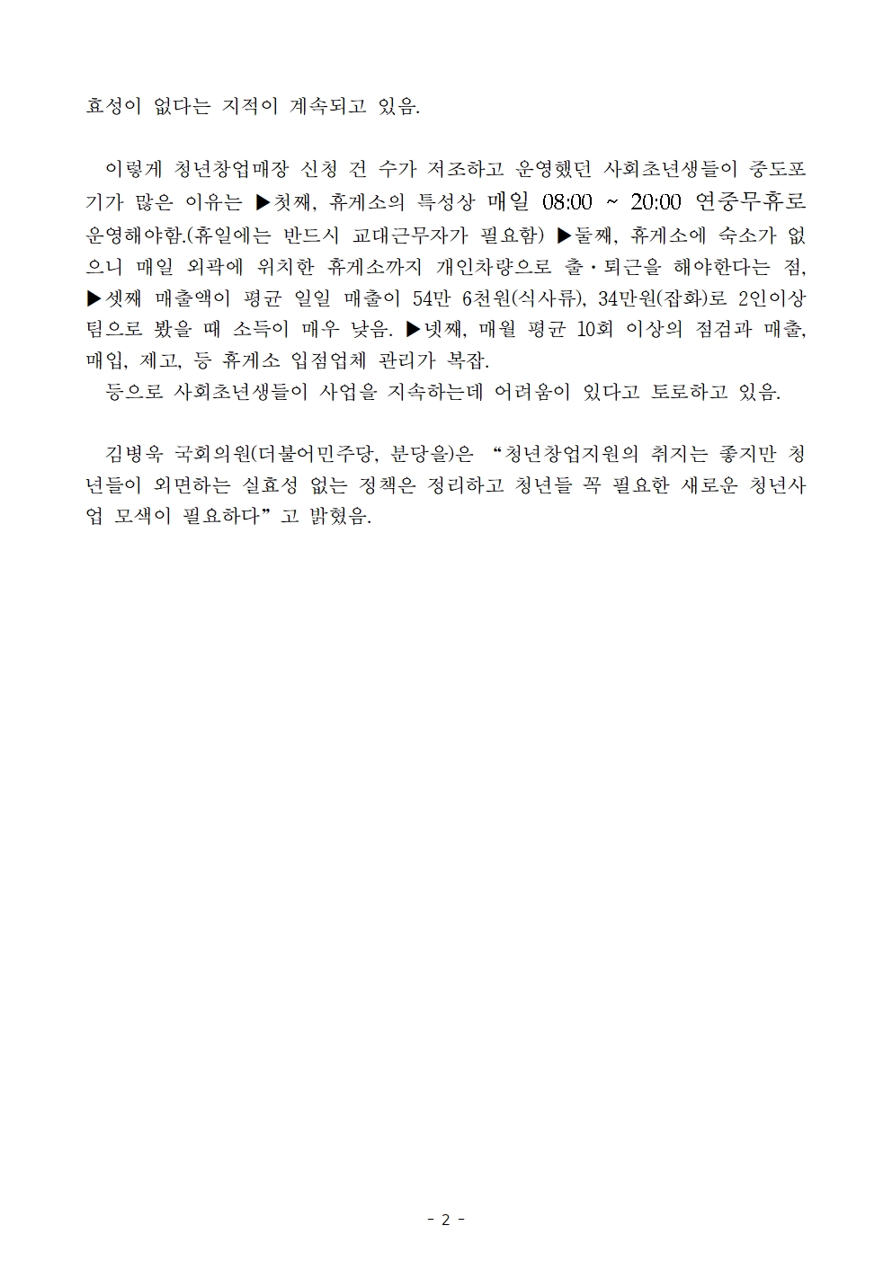 [국감보도자료] 김병욱 의원 “유명무실해진 휴게소 청년창업매장”