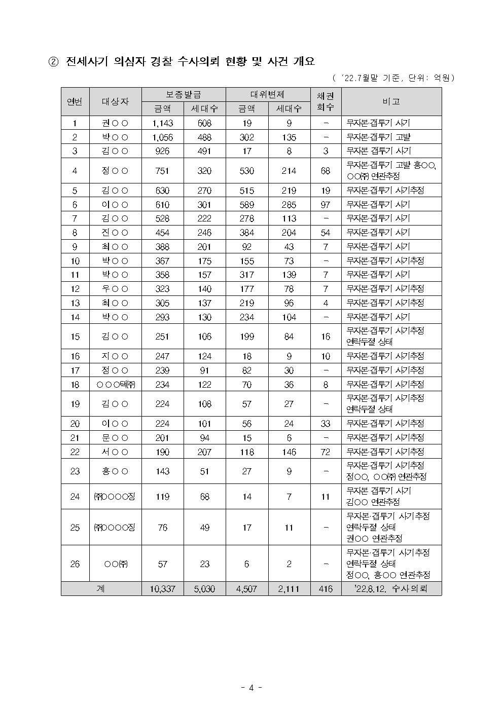[국감보도자료] 악성임대인 203명, 전세금 7,275억 안 돌려줘전세사기 의심자 29명 고발·수사의뢰