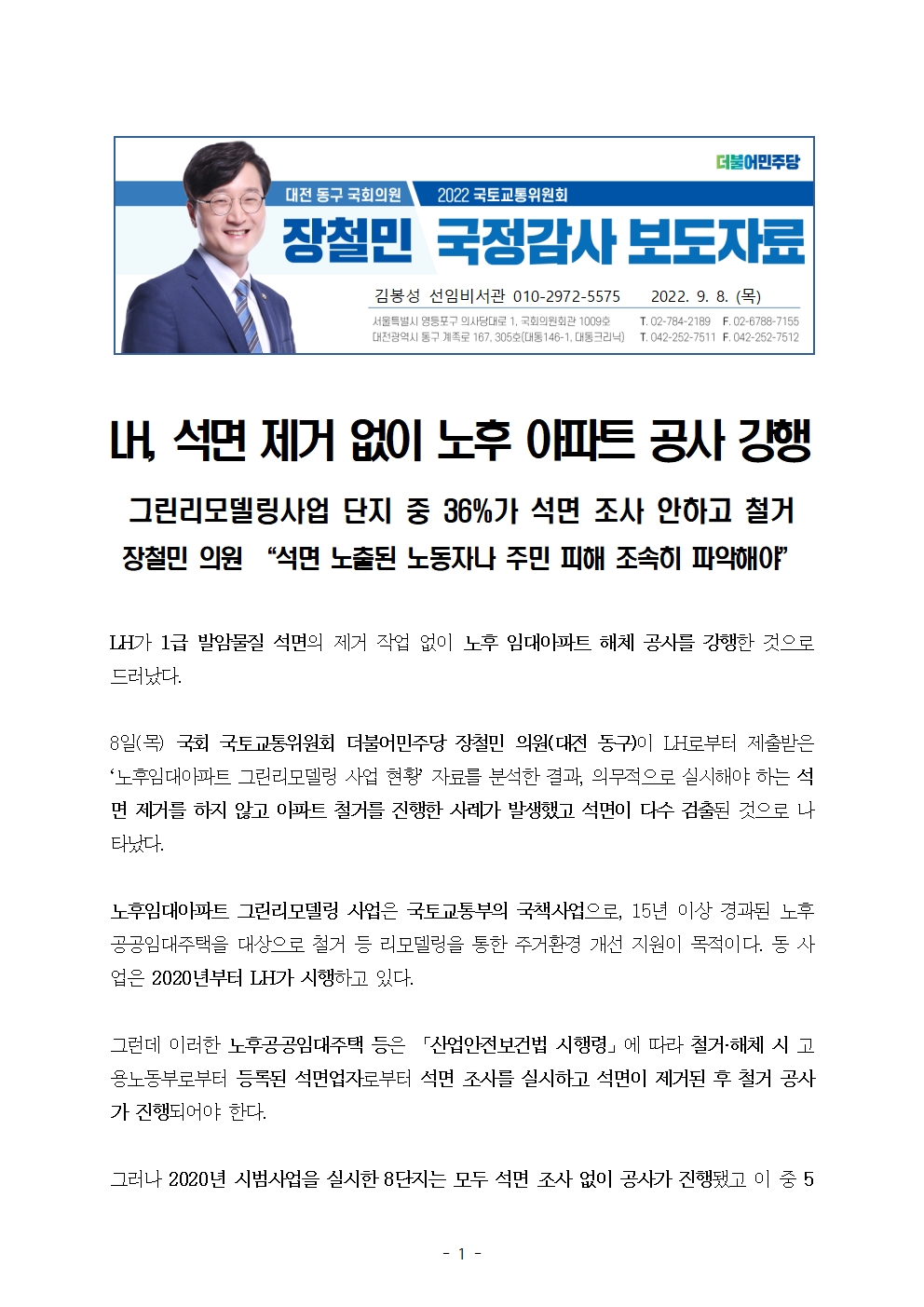 220908_장철민의원보도자료_LH,_석면_제거_없이_노후_아파트_공사_강행.hwp