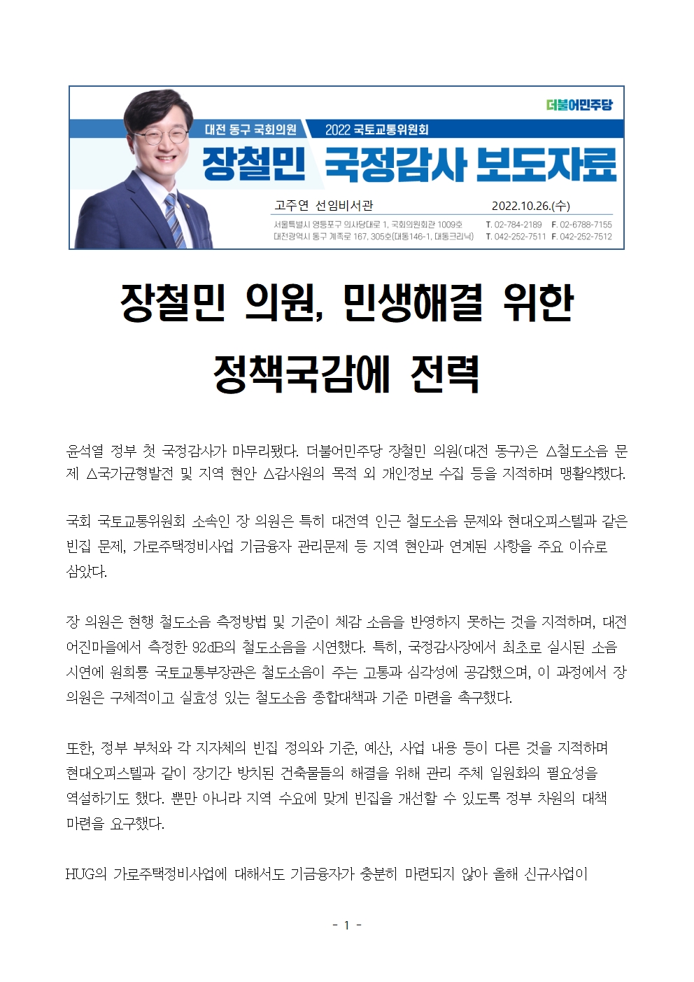 221026_장철민의원보도자료_장철민_의원,_민생해결_위한_정책국감에_전력.hwp