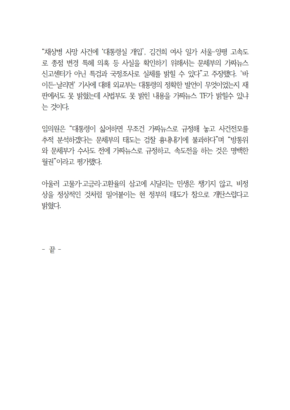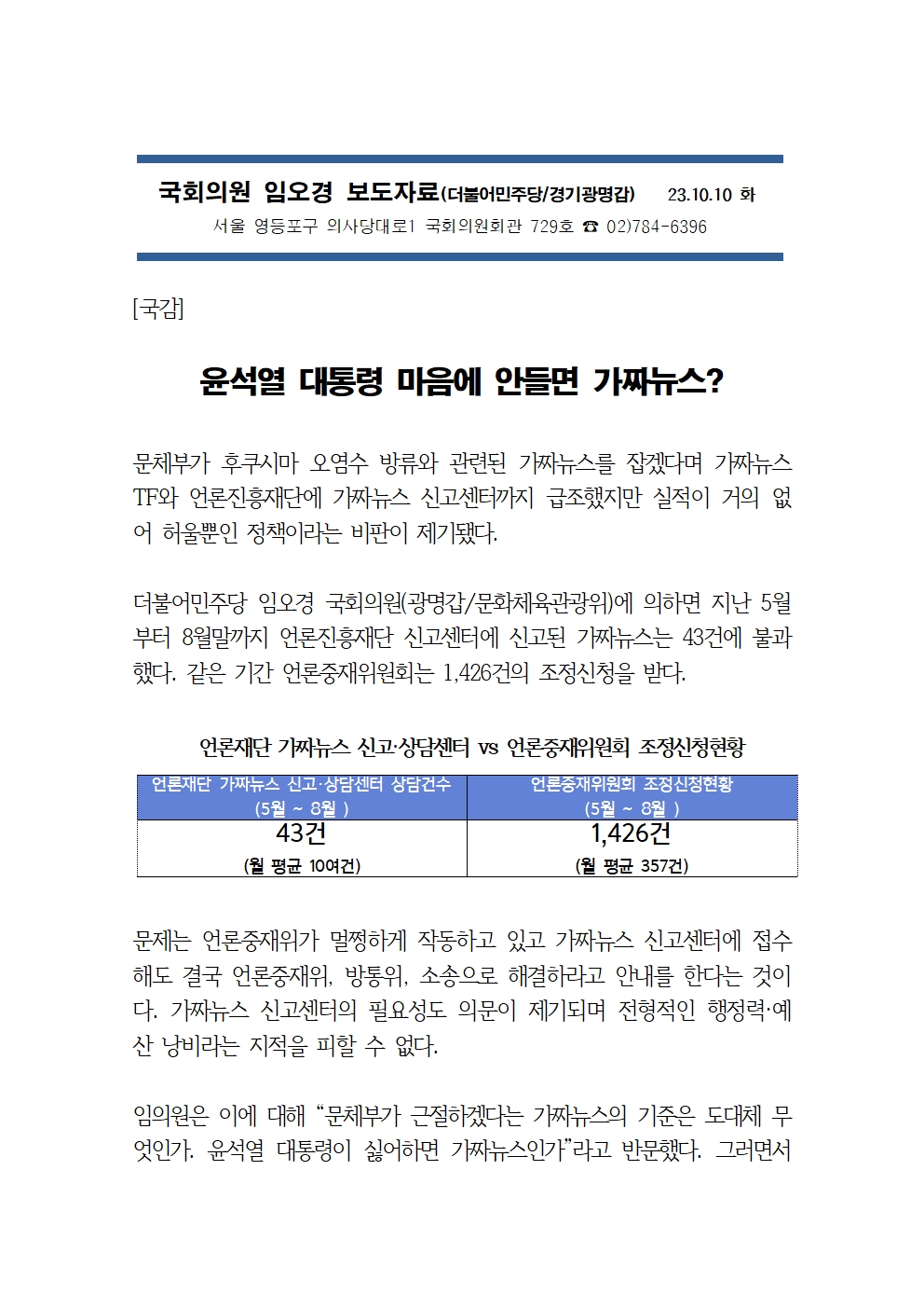 [국회의원 임오경 국감보도자료]윤석열 대통령 마음에 안들면 가짜뉴스?