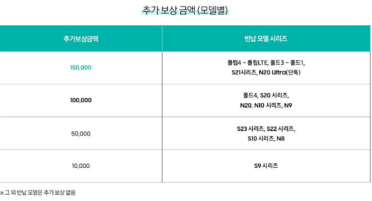 미국, 타브랜드 중고폰 추가 보상 금액(모델별)