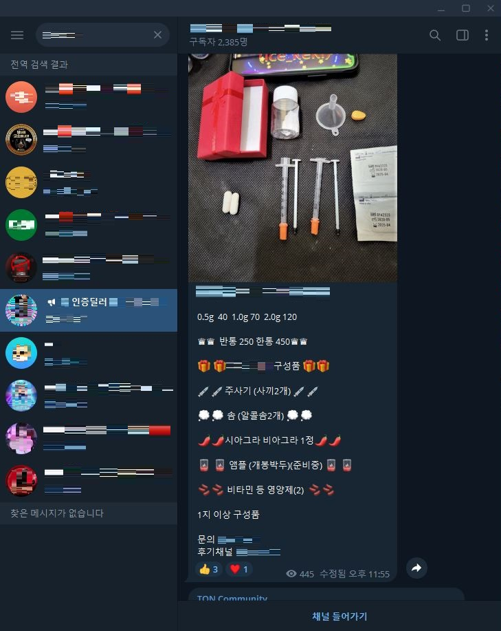 ※ 참고 : 구글 마약 은어 검색결과 및 SNS ID 접촉 결과