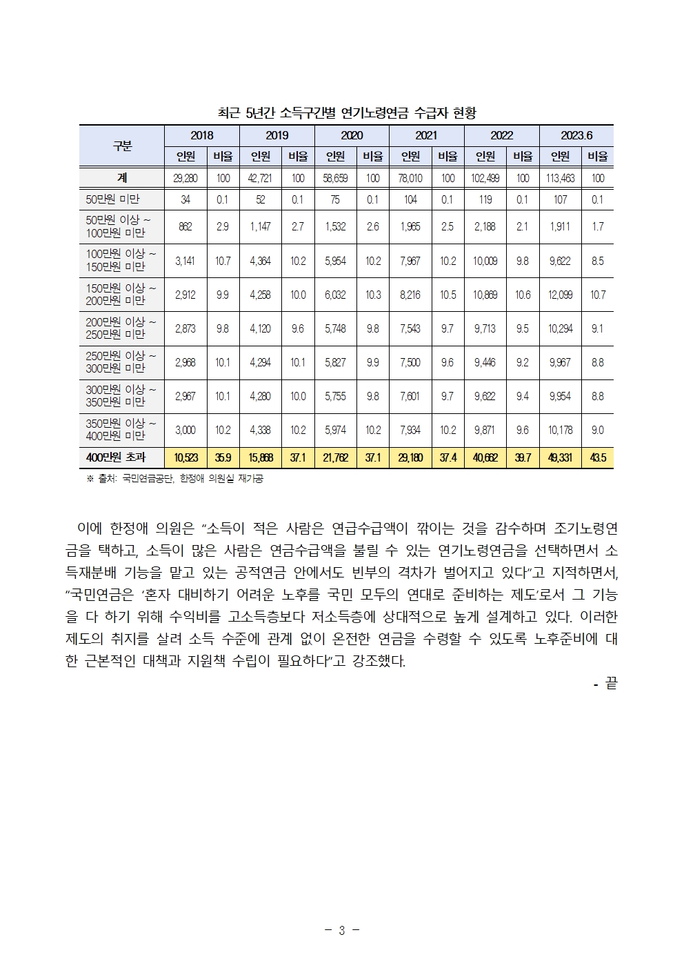 230913 [한정애의원 보도자료] 국민연금도 빈익빈 부익부 커지는 빈부격차.hwp