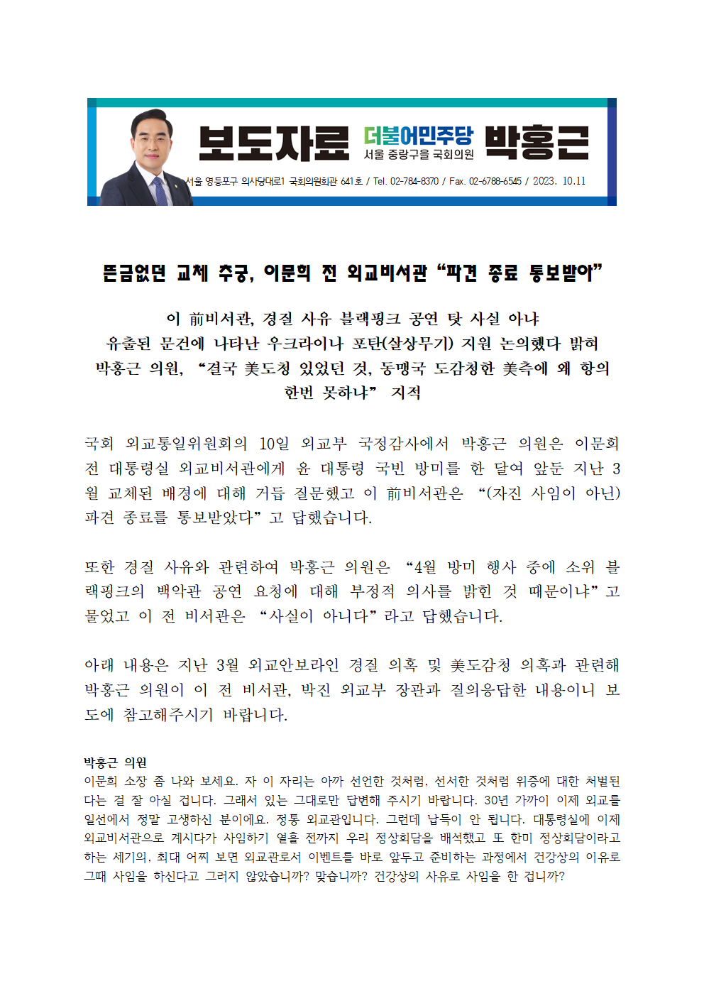 231011_박홍근_의원_뜬금없던_3월_교체_추궁_이문희_전_외교비서관_“파견_종료_통보받아”.hwp