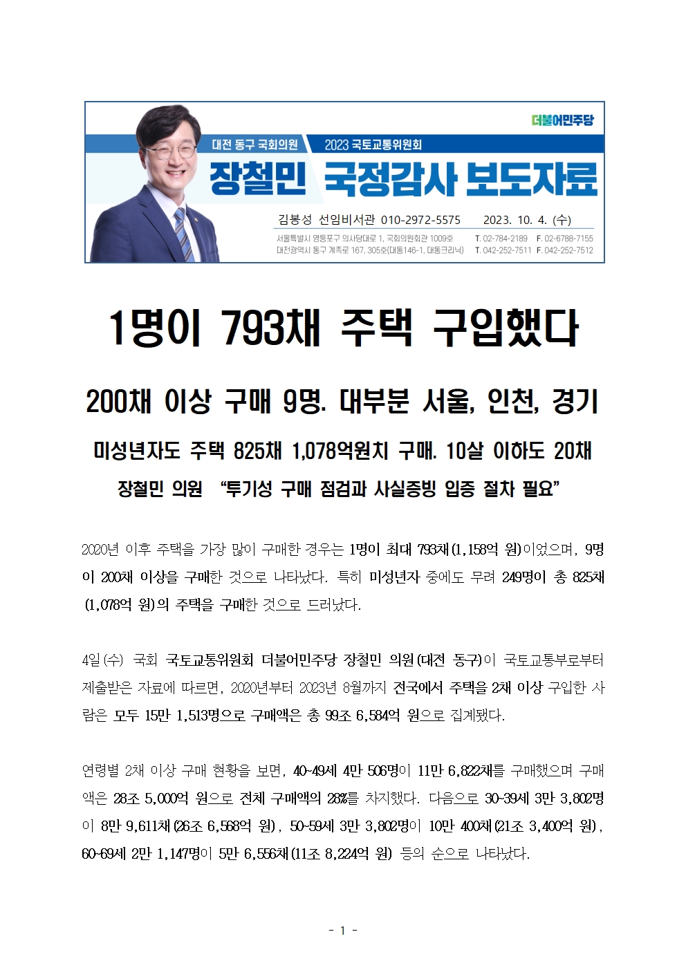 231004_장철민의원보도자료_1명이_793채_주택_구입했다.hwp