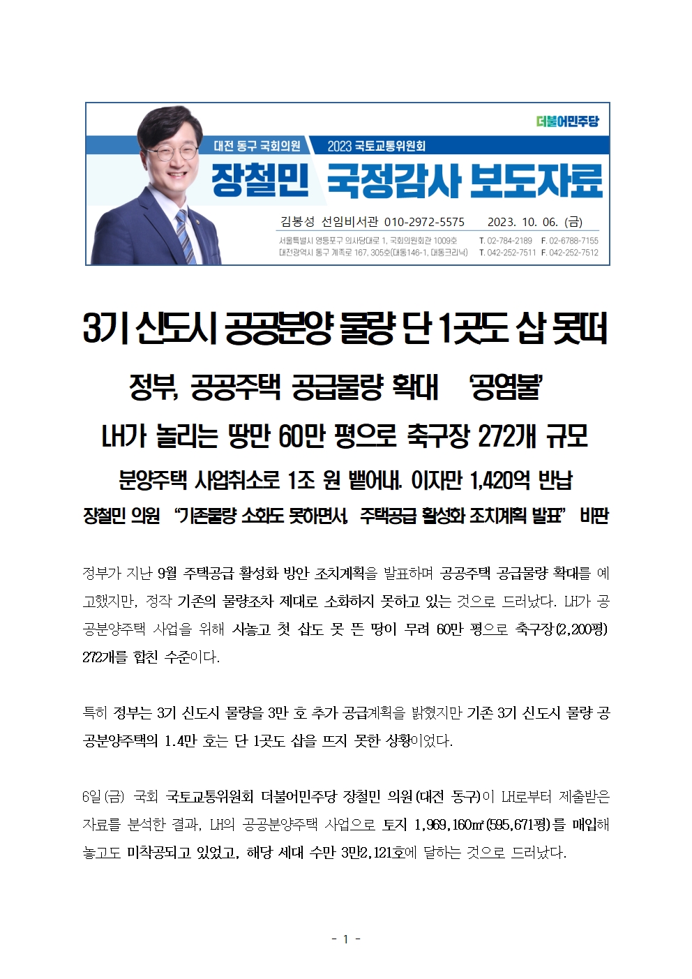 231006_장철민의원보도자료_3기_신도시_공공분양_물량_단_1곳도_삽_못떠.hwp