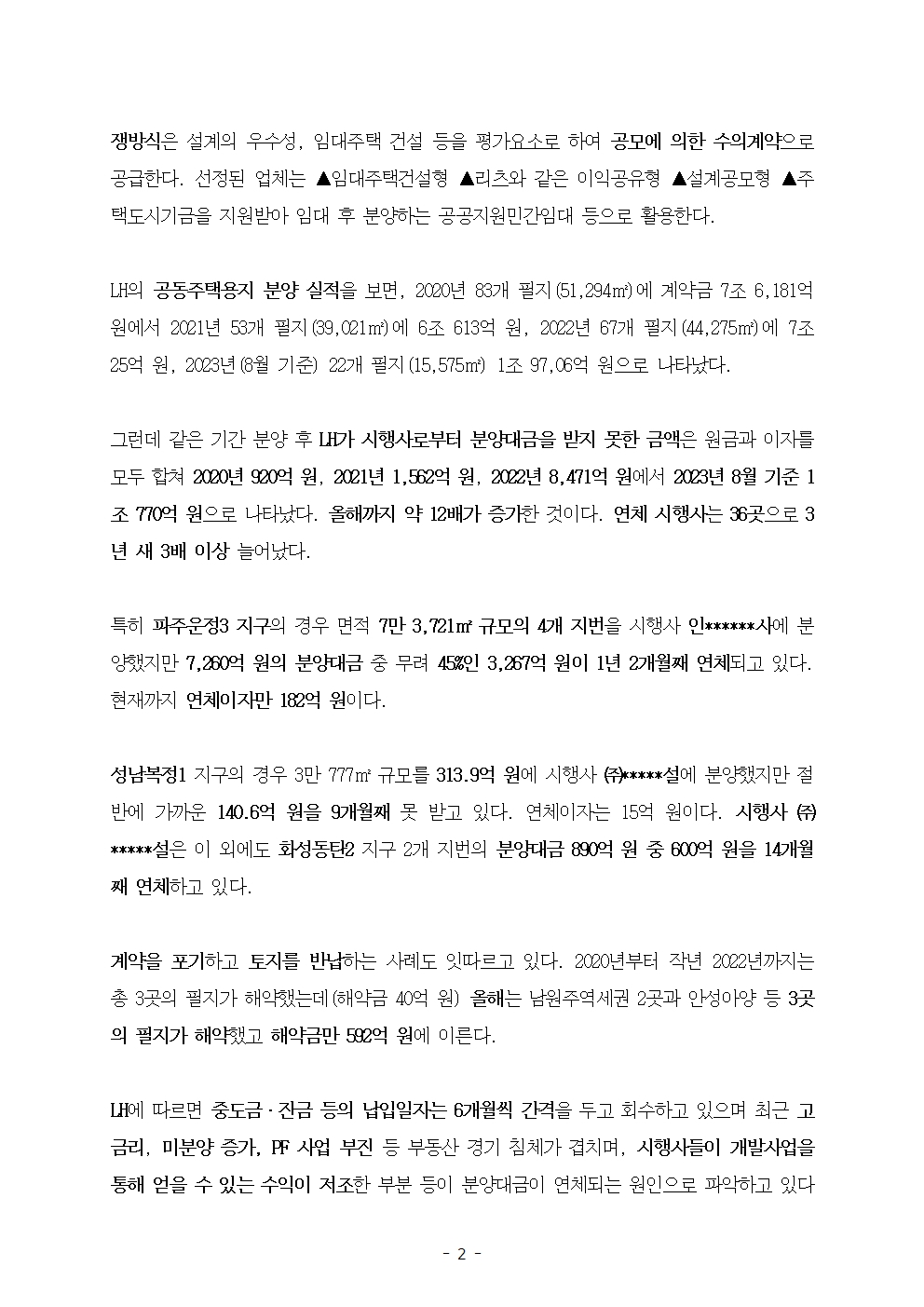 [국회의원 장철민 보도자료] LH, 못 받은 연체금 12배 증가