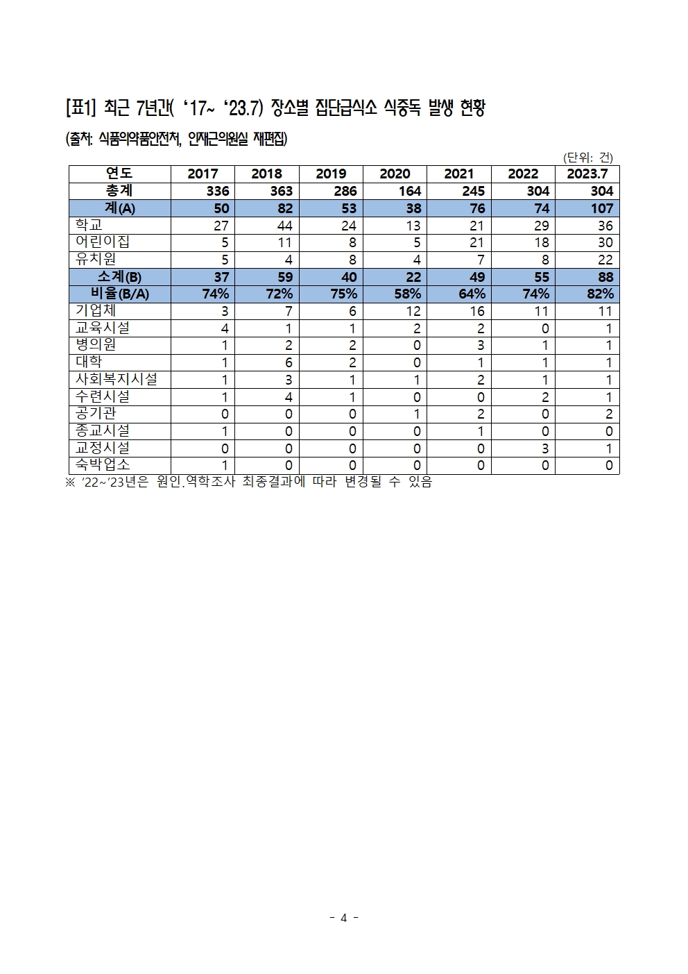 [인재근의원실 보도자료] 7월말 국내 식중독 발생 건수, 최근 7년간 동일기간 발생 건수 중 최다