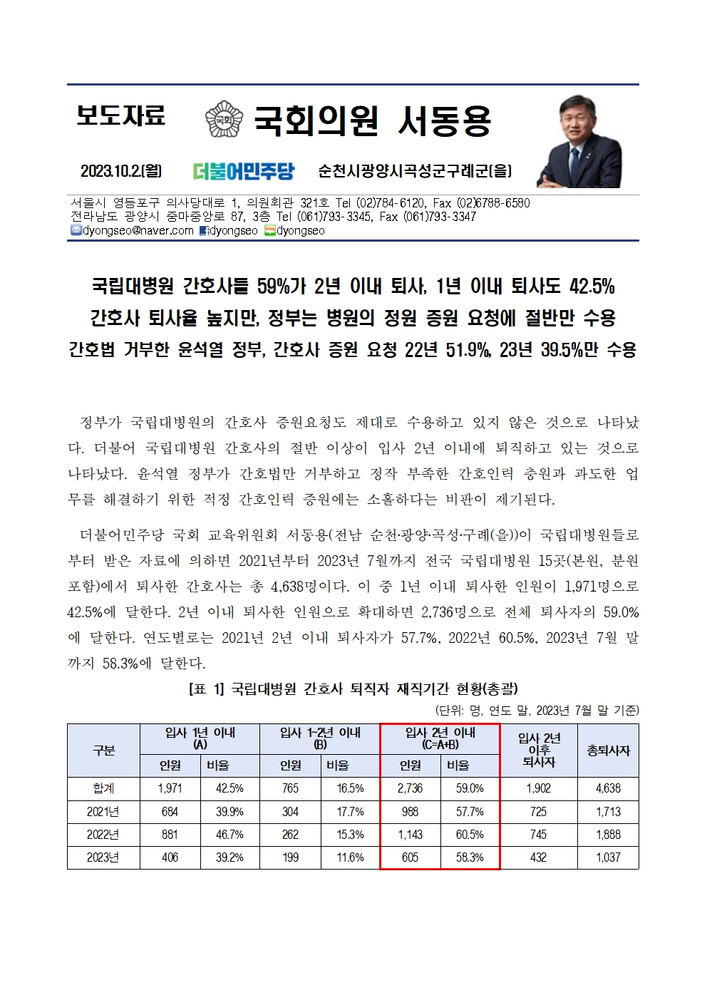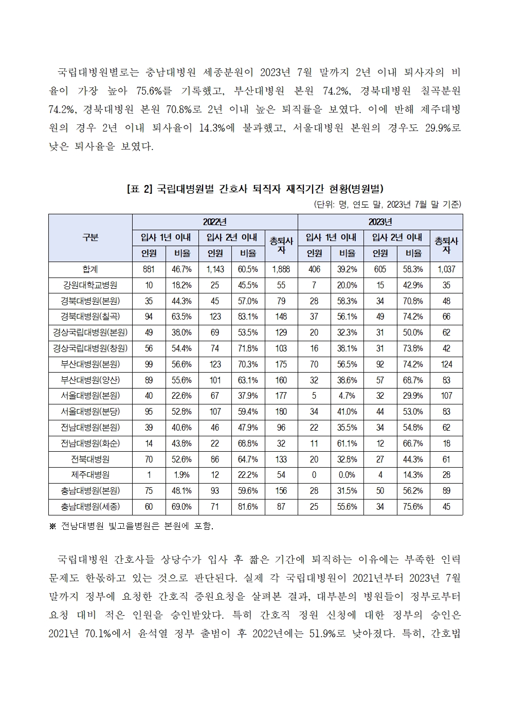 4. 231002_국감_서동용_국립대병원_간호사들_59%가_2년_이내_퇴사.hwp