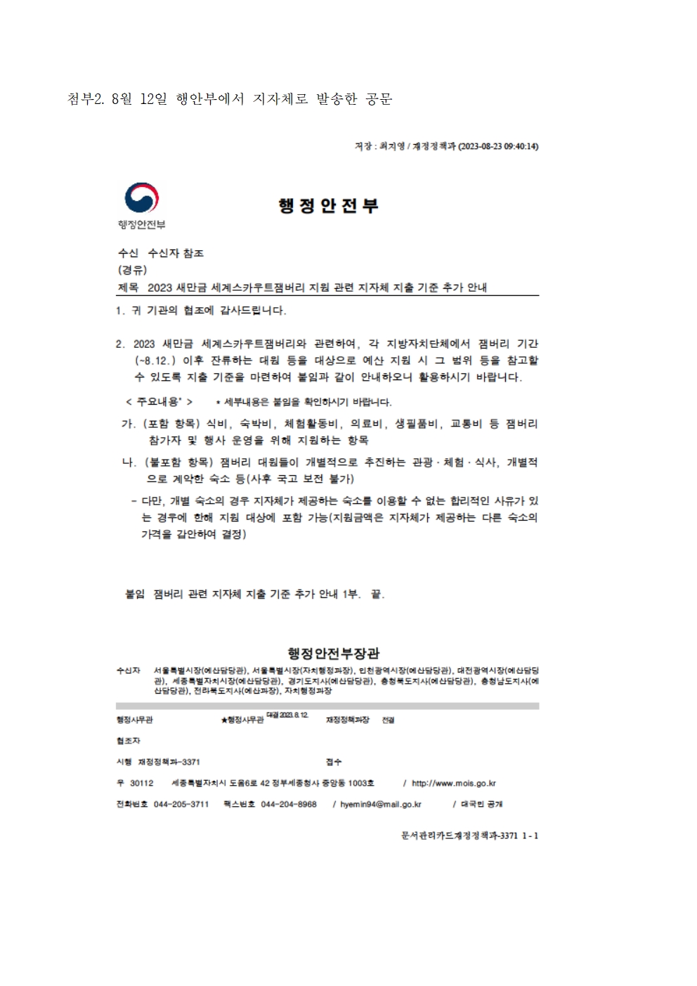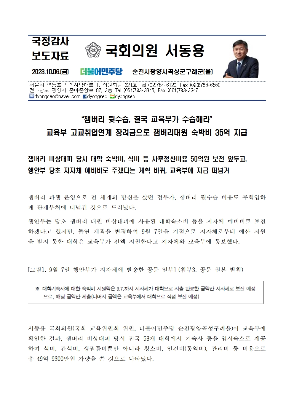 9. 231006_국감_서동용_국회의원서동용_잼버리 사후 정산 교육부 뒷수습.hwp